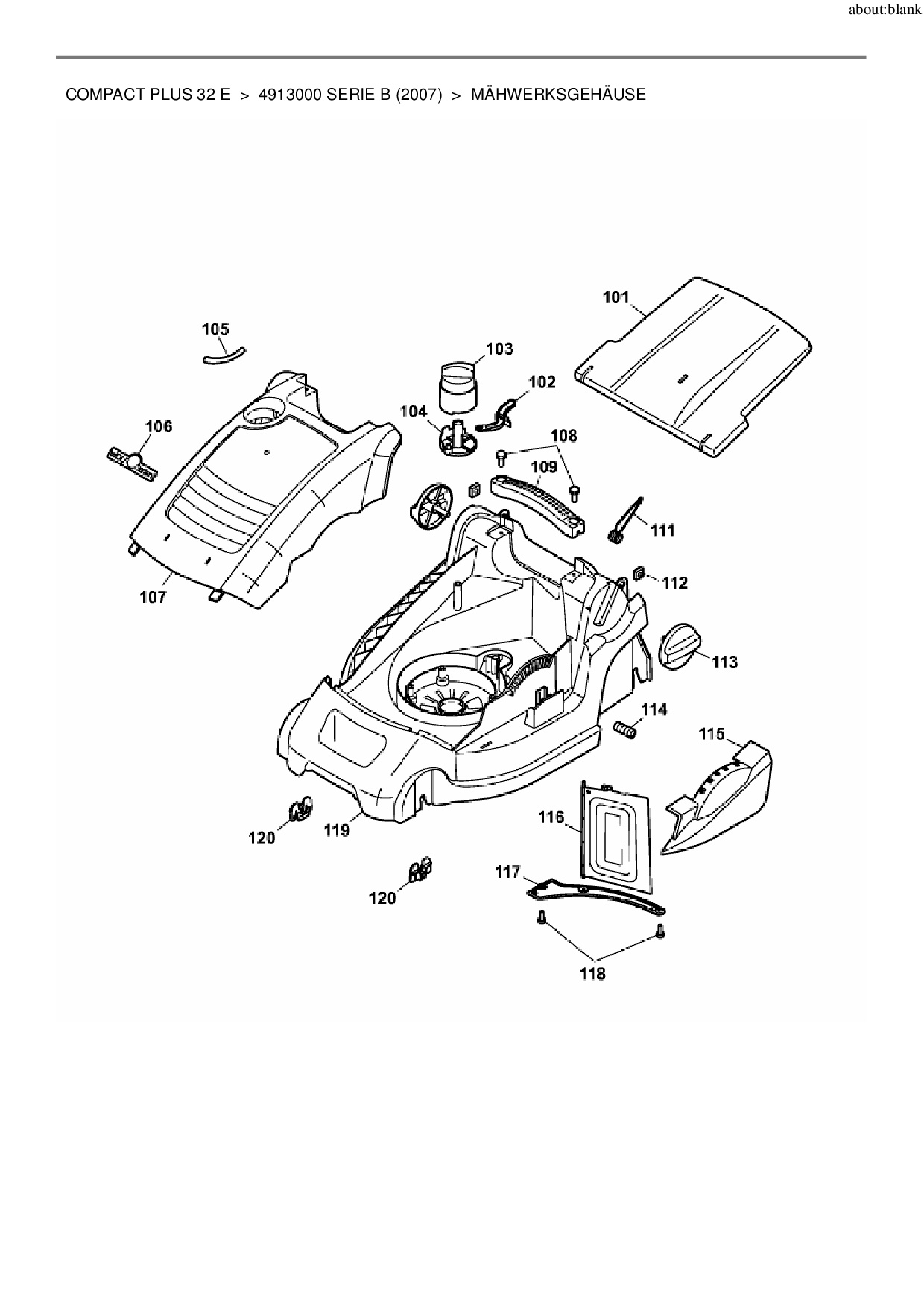 Ersatzteile für Elektromäher Wolf-Garten Compact plus 32 E aus der Zeichnung Mähwerksgehäuse: