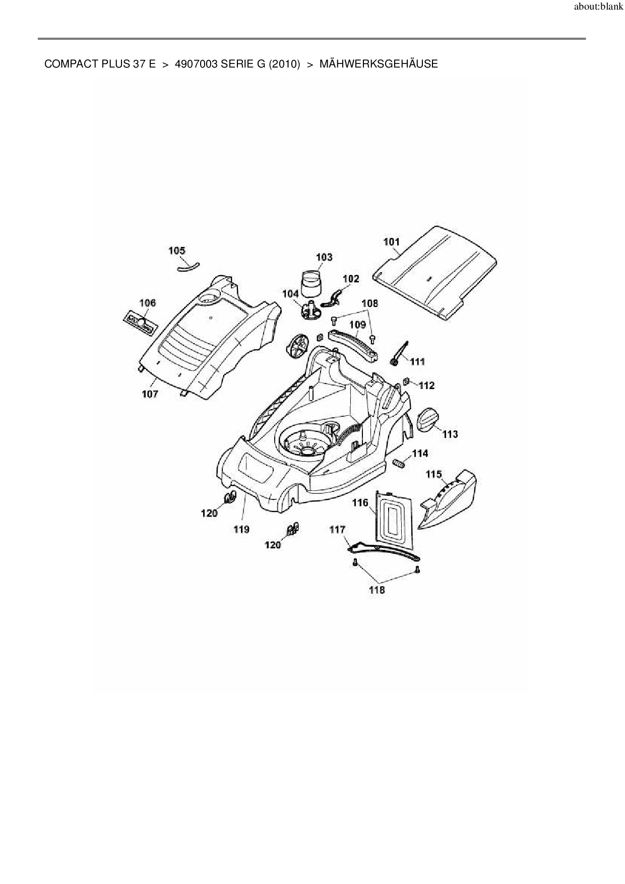Zeichnung für Wolf-Garten Elektromäher Compact plus 37 E mit der Geräte-Artikelnr. 4907003 Serie G ab Baujahr 2010: