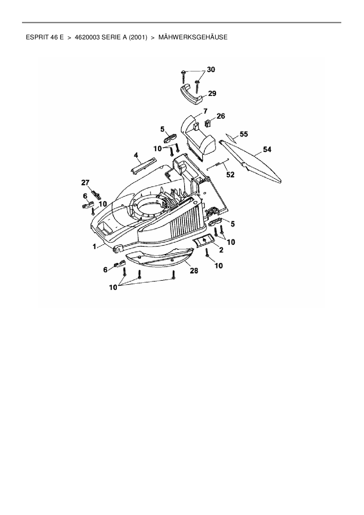 Ersatzteile für Elektromäher Wolf-Garten Esprit 46 E aus der Zeichnung Mähwerksgehäuse: