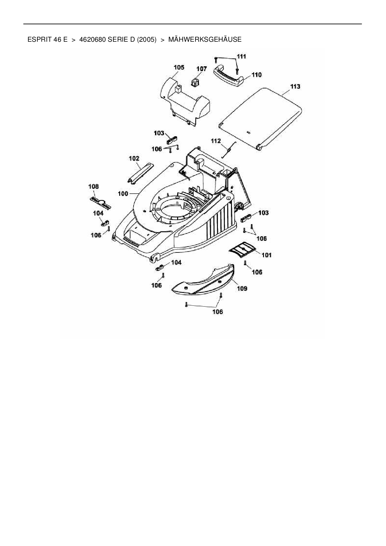 Ersatzteile für Elektromäher Wolf-Garten Esprit 46 E aus der Zeichnung Mähwerksgehäuse: