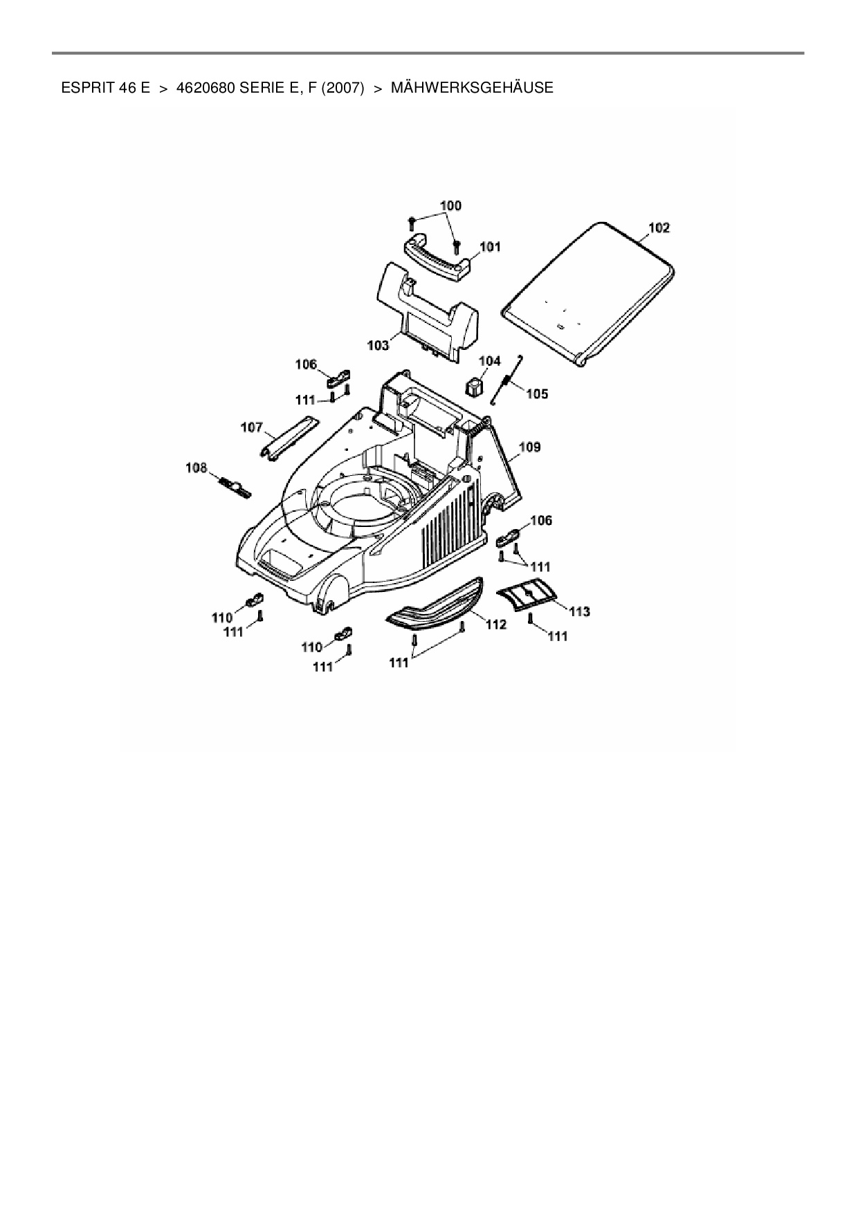Download Ersatzteil-Zeichnung Wolf-Garten Esprit 46 E Zeichnung Mähwerksgehäuse (PDF-Format)