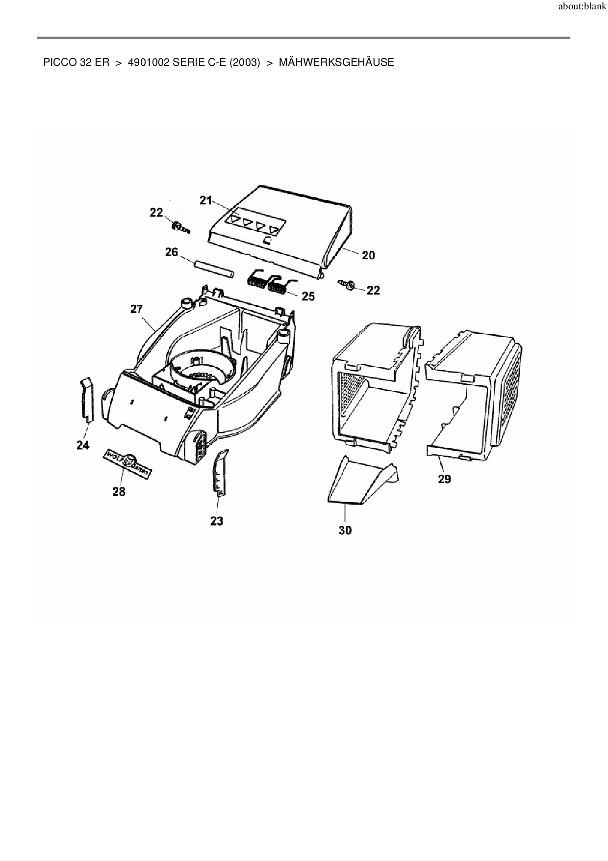 Ersatzteile für Elektromäher Wolf-Garten Picco 32 ER aus der Zeichnung Mähwerksgehäuse:
