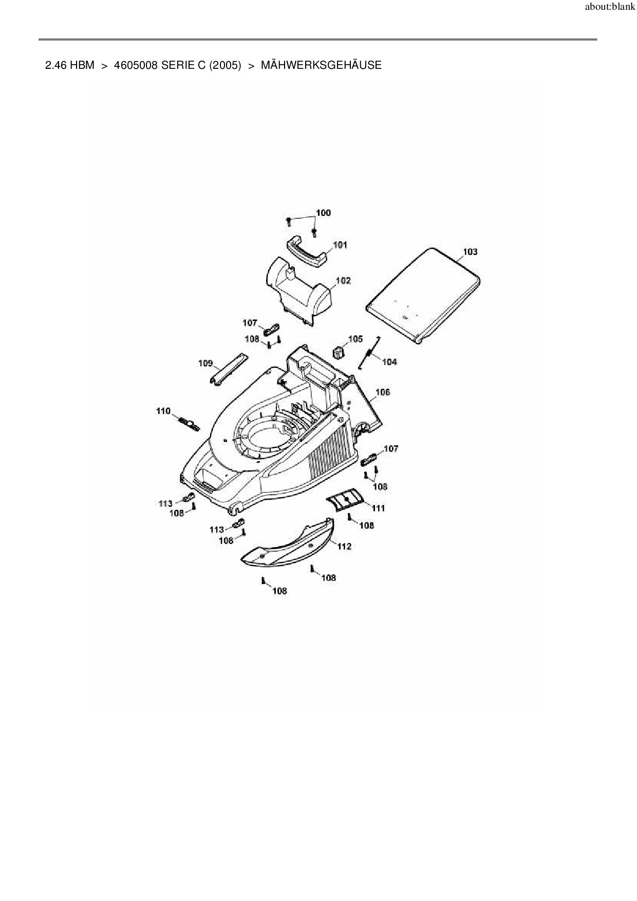 Ersatzteile für Motormäher mit Antrieb Wolf-Garten 2.46 HBM aus der Zeichnung Mähwerksgehäuse: