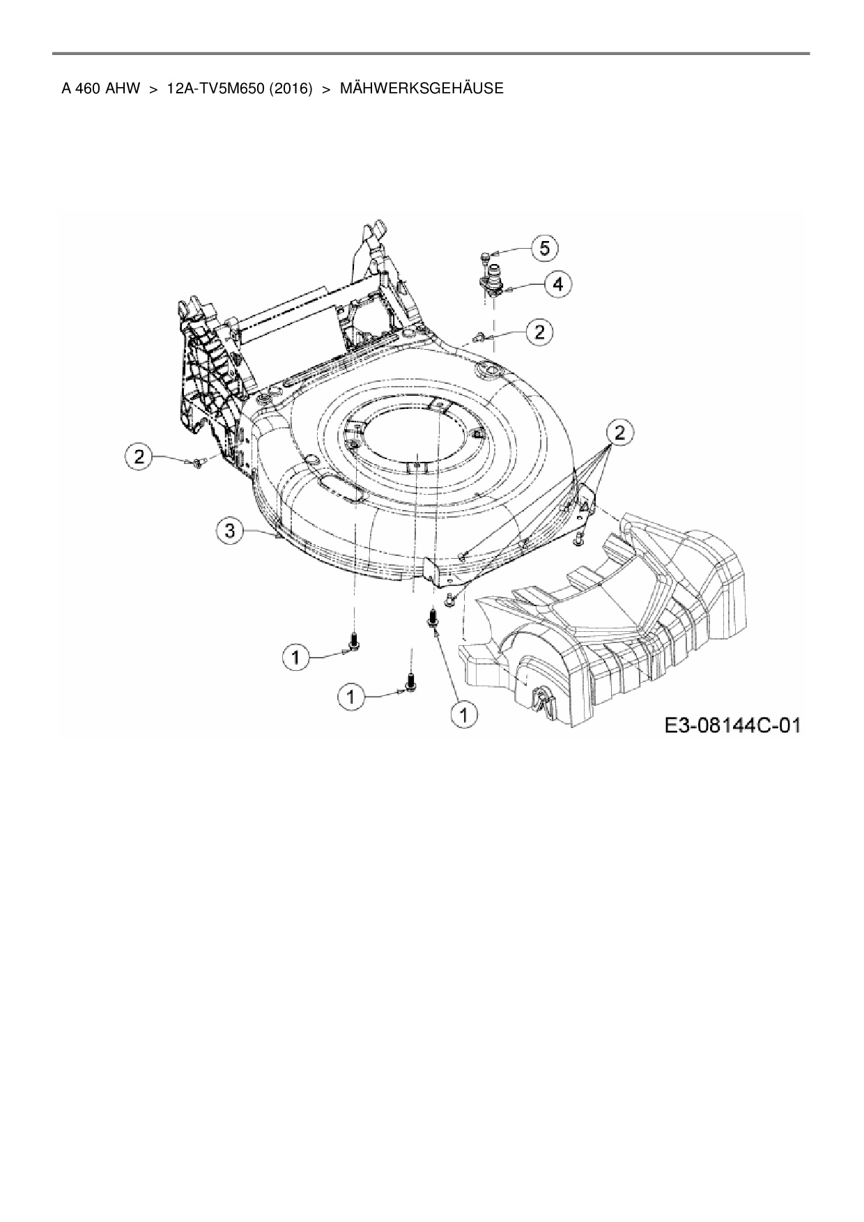 Ersatzteile für Motormäher mit Antrieb Wolf-Garten A 460 AHW aus der Zeichnung Mähwerksgehäuse: