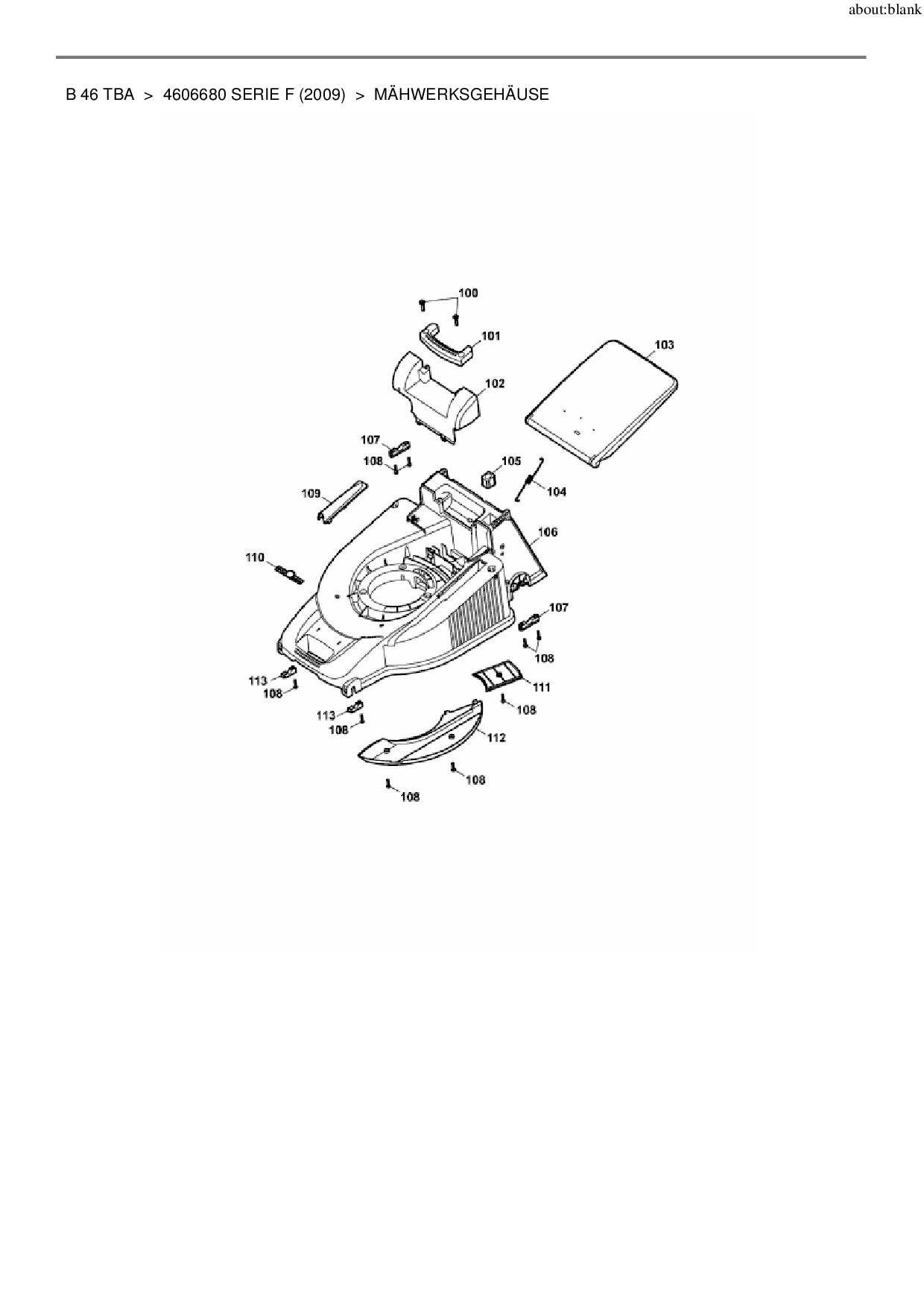 Download Ersatzteil-Zeichnung Wolf-Garten B 46 TBA Zeichnung Mähwerksgehäuse (PDF-Format)