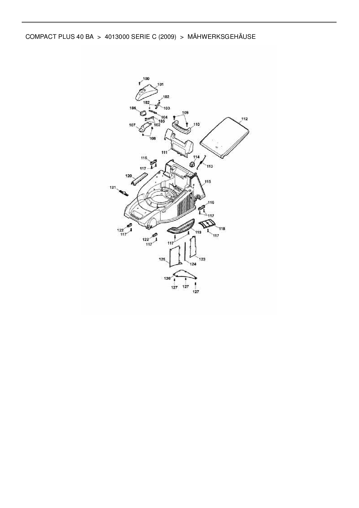Download Ersatzteil-Zeichnung Wolf-Garten Compact plus 40 BA Zeichnung Mähwerksgehäuse (PDF-Format)