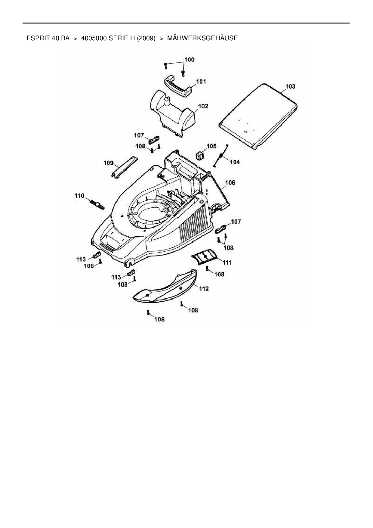 Ersatzteile für Motormäher mit Antrieb Wolf-Garten Esprit 40 BA aus der Zeichnung Mähwerksgehäuse: