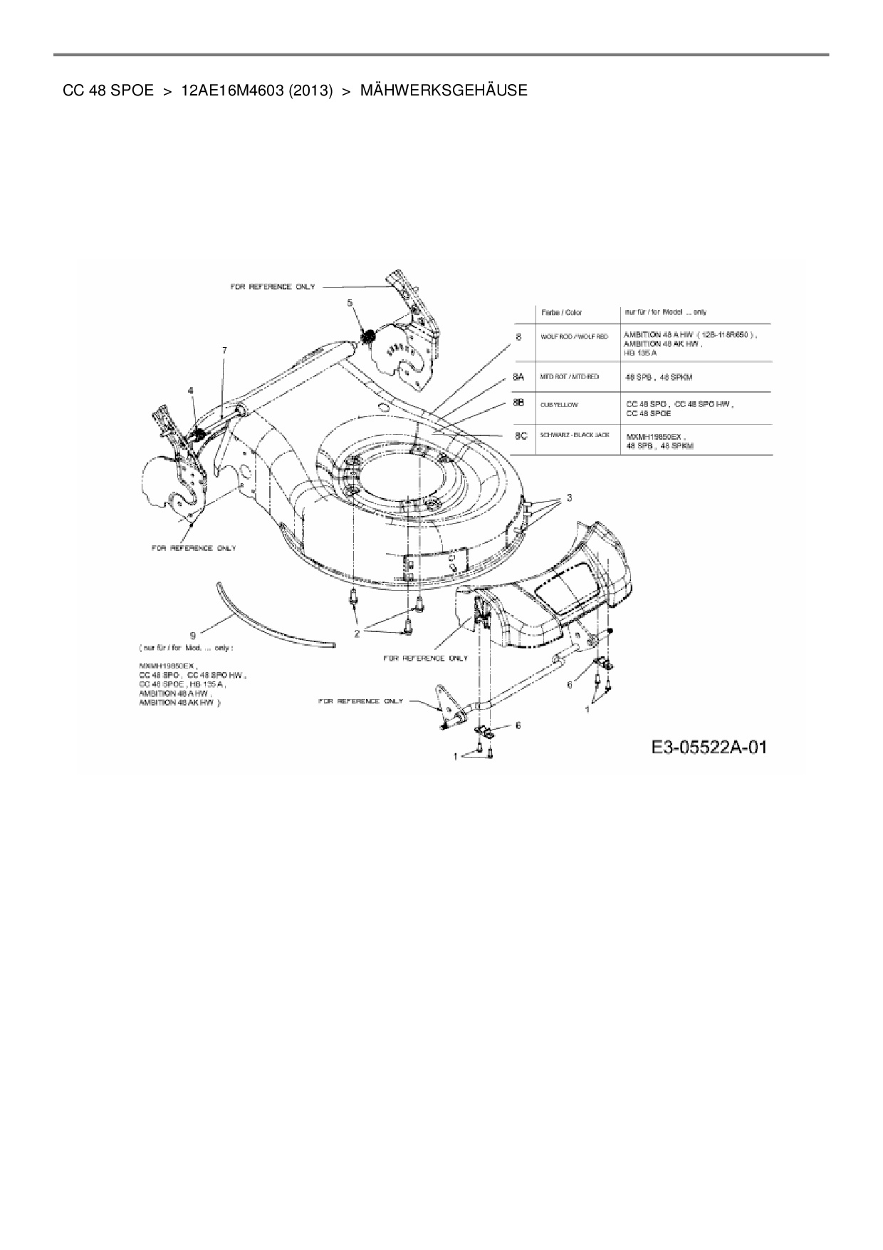 Ersatzteile für Motormäher mit Antrieb Cub Cadet CC 48 SPOE aus der Zeichnung Mähwerksgehäuse: