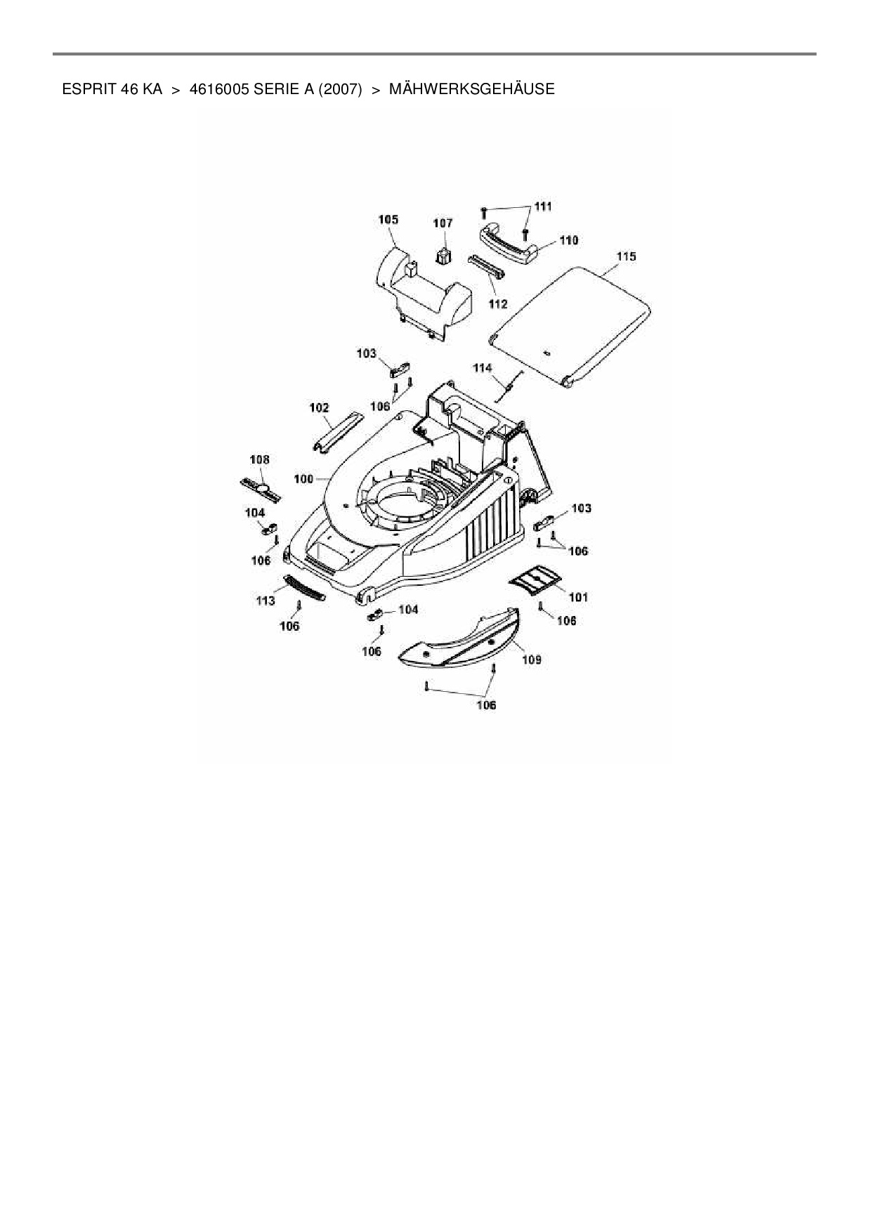Ersatzteile für Motormäher mit Antrieb Wolf-Garten Esprit 46 KA aus der Zeichnung Mähwerksgehäuse: