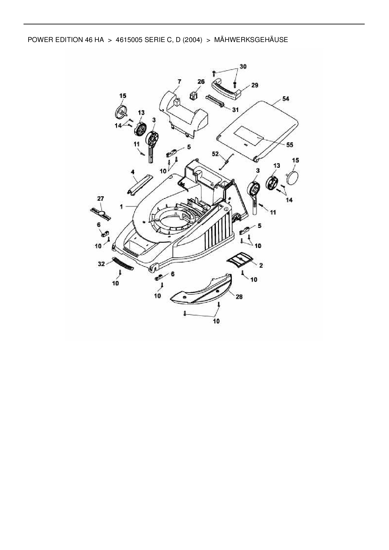 Ersatzteile für Motormäher mit Antrieb Wolf-Garten Power Edition 46 HA aus der Zeichnung Mähwerksgehäuse: