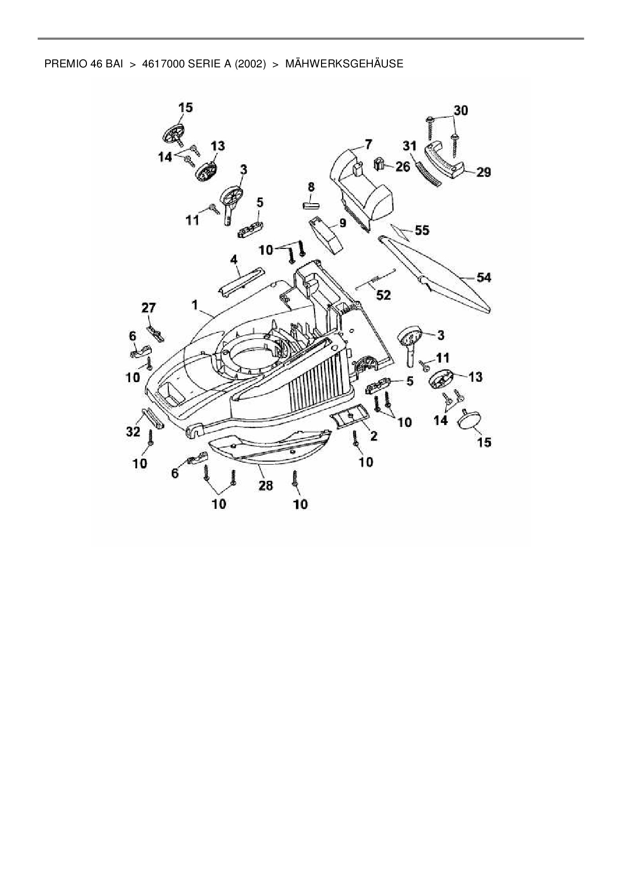 Ersatzteile für Motormäher mit Antrieb Wolf-Garten Premio 46 BAi aus der Zeichnung Mähwerksgehäuse: