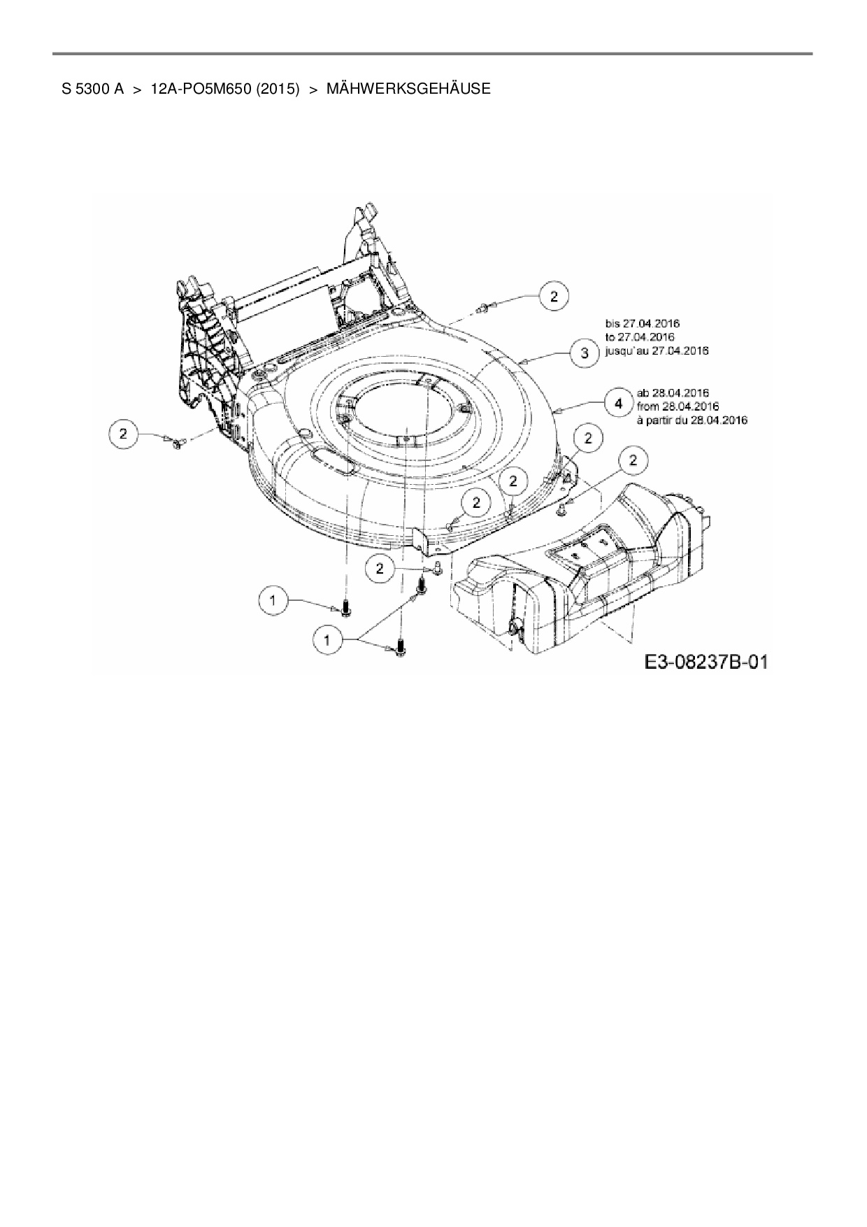Ersatzteile für Motormäher mit Antrieb Wolf-Garten S 5300 A aus der Zeichnung Mähwerksgehäuse: