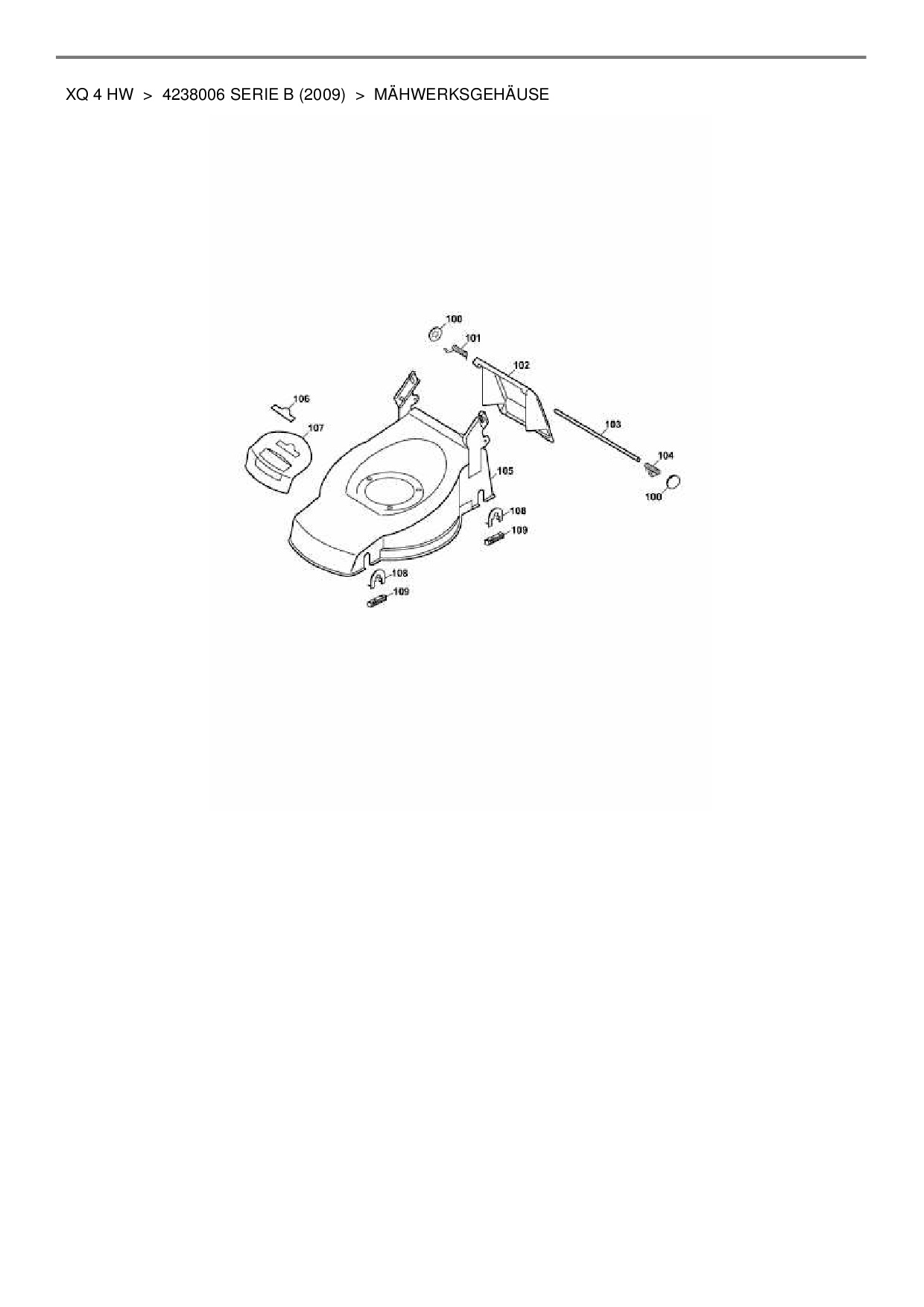 Ersatzteile für Motormäher mit Antrieb Wolf-Garten XQ 4 HW aus der Zeichnung Mähwerksgehäuse: