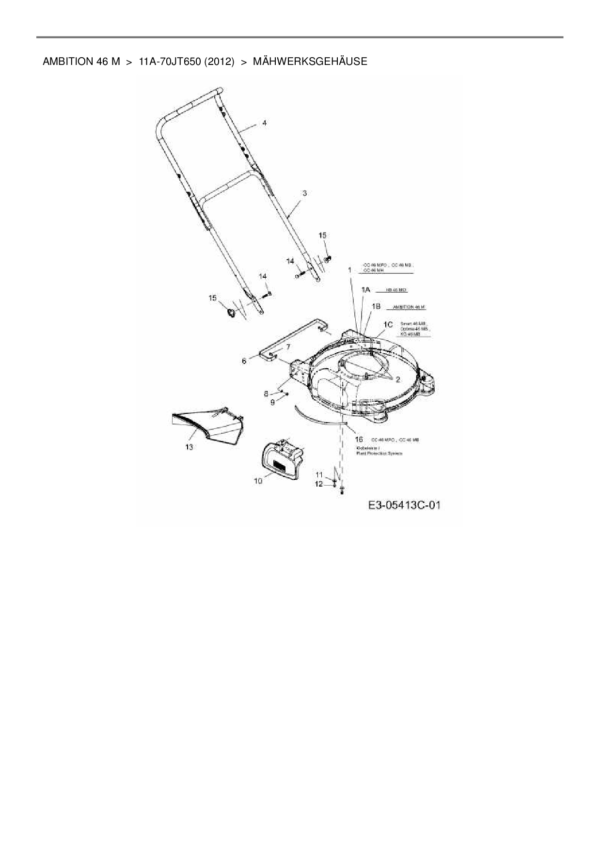 Ersatzteile für Motormäher Wolf-Garten Ambition 46 M aus der Zeichnung Mähwerksgehäuse: