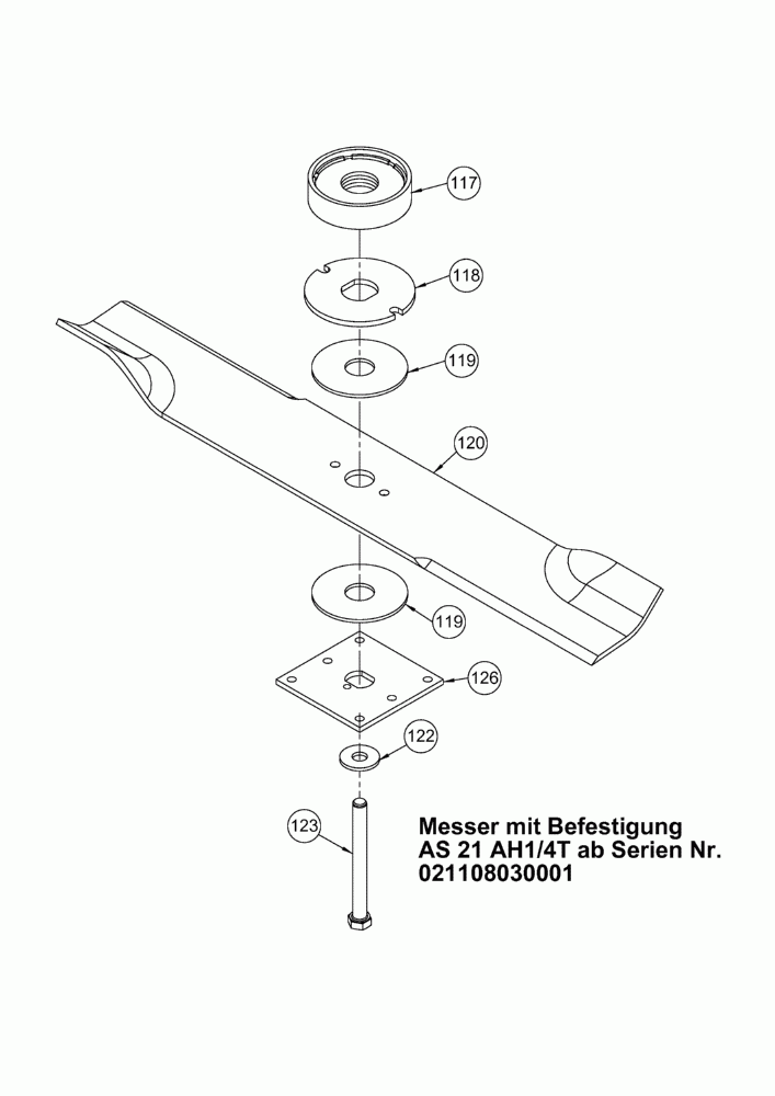 Hier finden Sie alle Ersatzteile von AS-Motor Allmäher AS 21 AH1/4T und AS 21 4T B&S ab FNr. 021108030001 aus dem Zeichnungsblatt Messer + Befestigung: