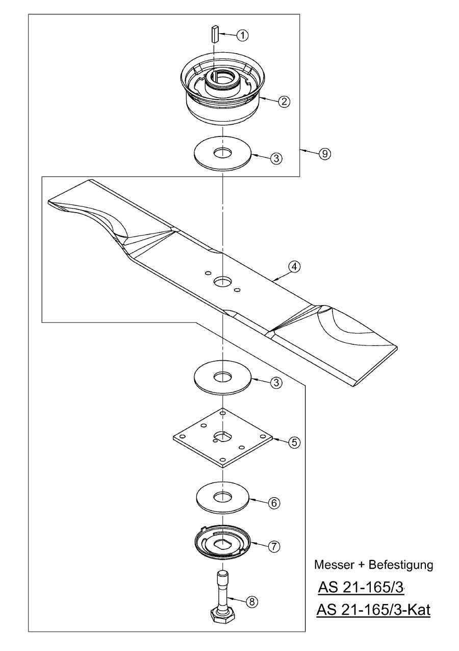Hier finden Sie alle Ersatzteile von AS-Motor Allmäher AS 21 2T und AS 21-165/3-Kat ab FNr. 020211040001 aus dem Zeichnungsblatt Messer + Befestigung: