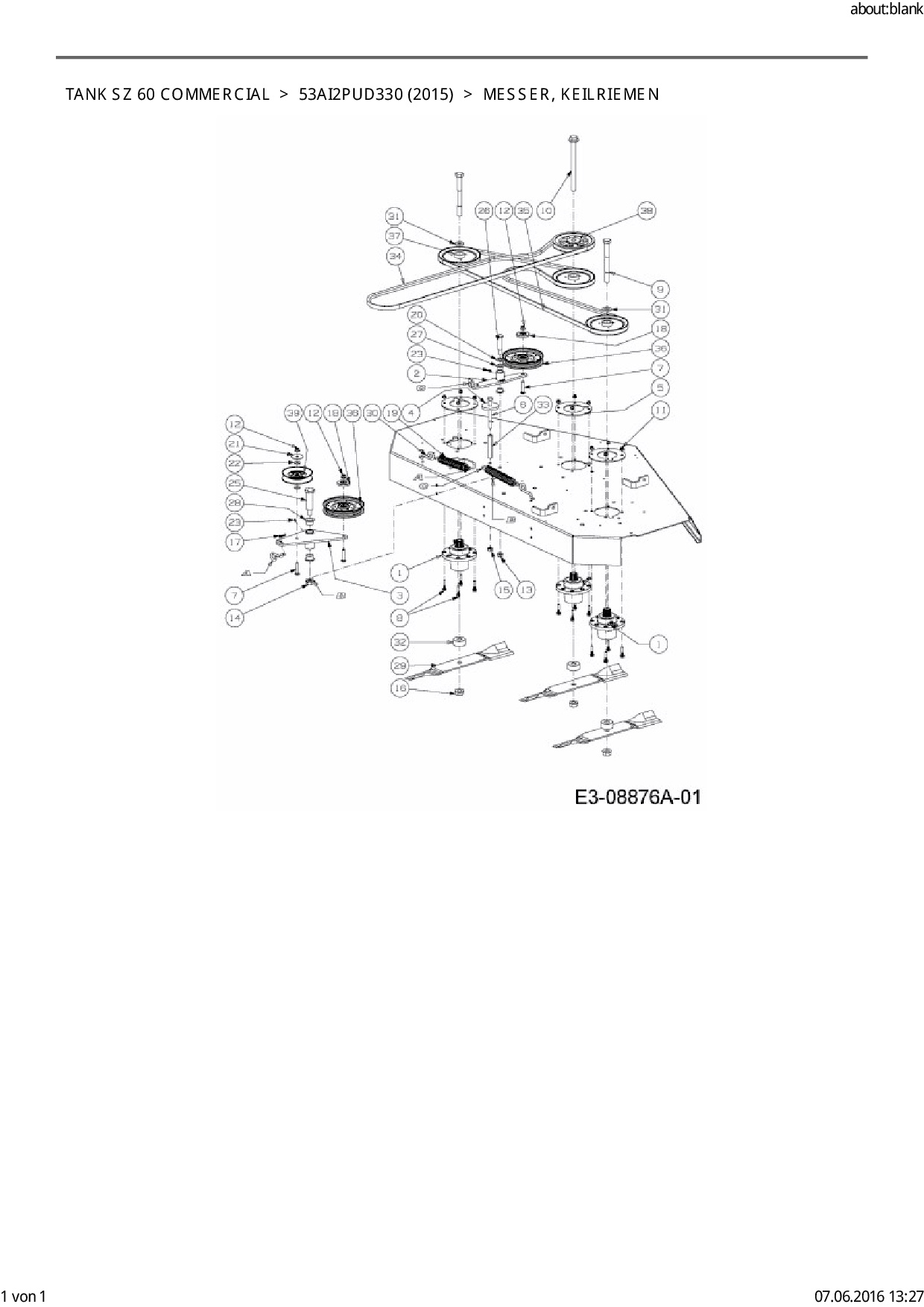 Ersatzteile für Zero Turn Cub Cadet Tank SZ 60 Commercial aus der Zeichnung Messer, Keilriemen: