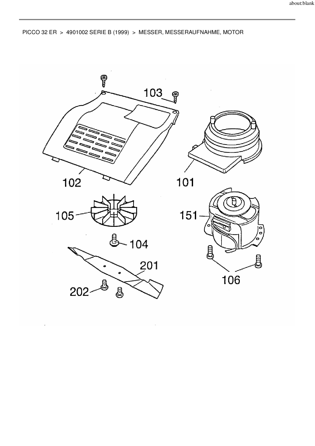 Ersatzteile für Elektromäher Wolf-Garten Picco 32 ER aus der Zeichnung Messer, Messeraufnahme, Motor: