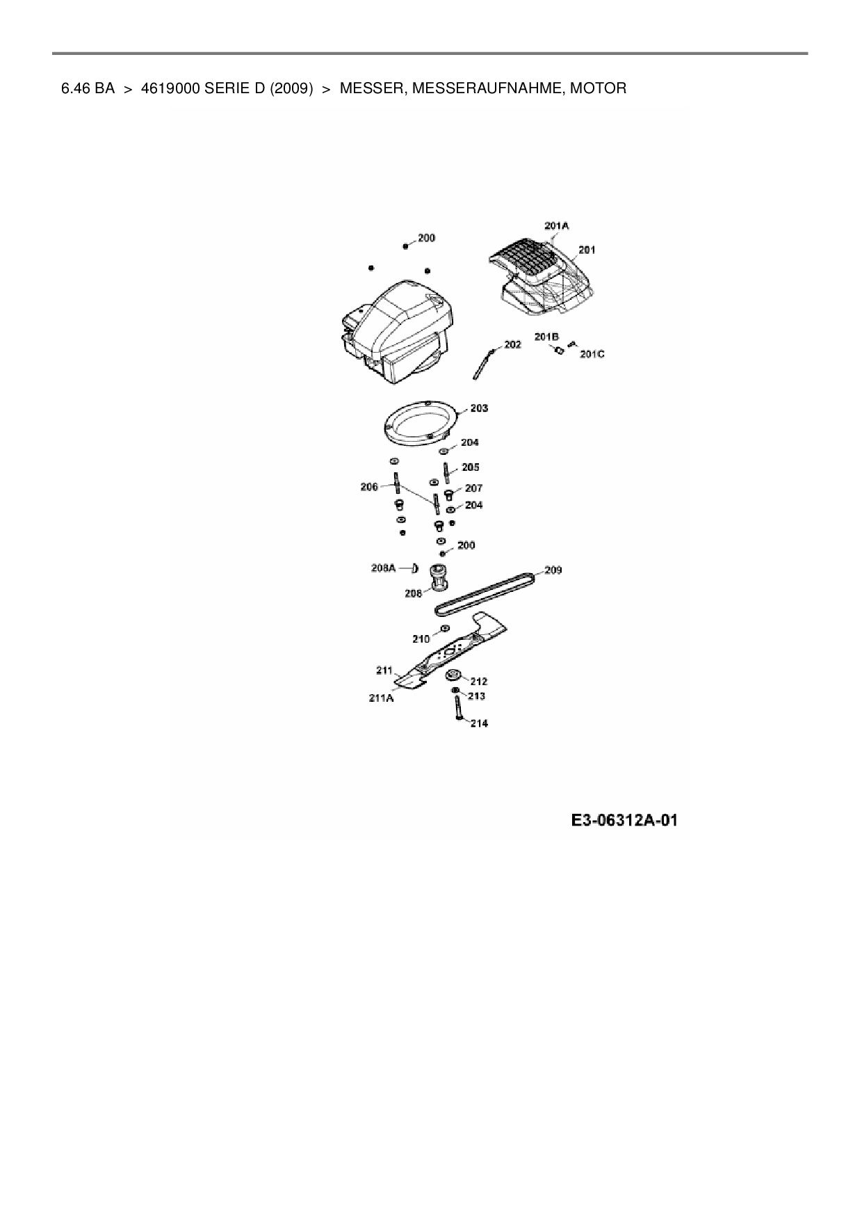 Zeichnung für Wolf-Garten Motormäher mit Antrieb 6.46 BA mit der Geräte-Artikelnr. 4619000 Serie D ab Baujahr 2009: