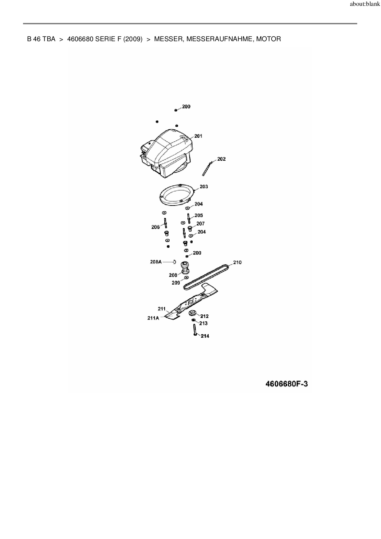 Zeichnung für Wolf-Garten Motormäher mit Antrieb B 46 TBA mit der Geräte-Artikelnr. 4606680 Serie F ab Baujahr 2009: