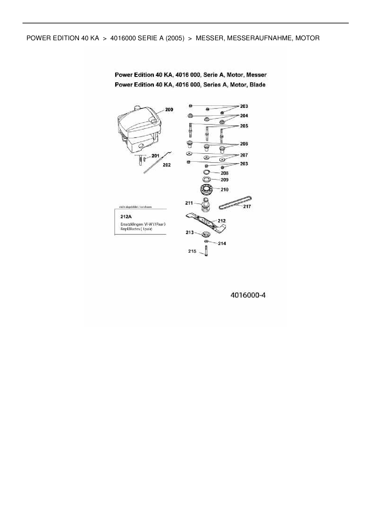 Ersatzteile für Motormäher mit Antrieb Wolf-Garten Power Edition 40 KA aus der Zeichnung Messer, Messeraufnahme, Motor: