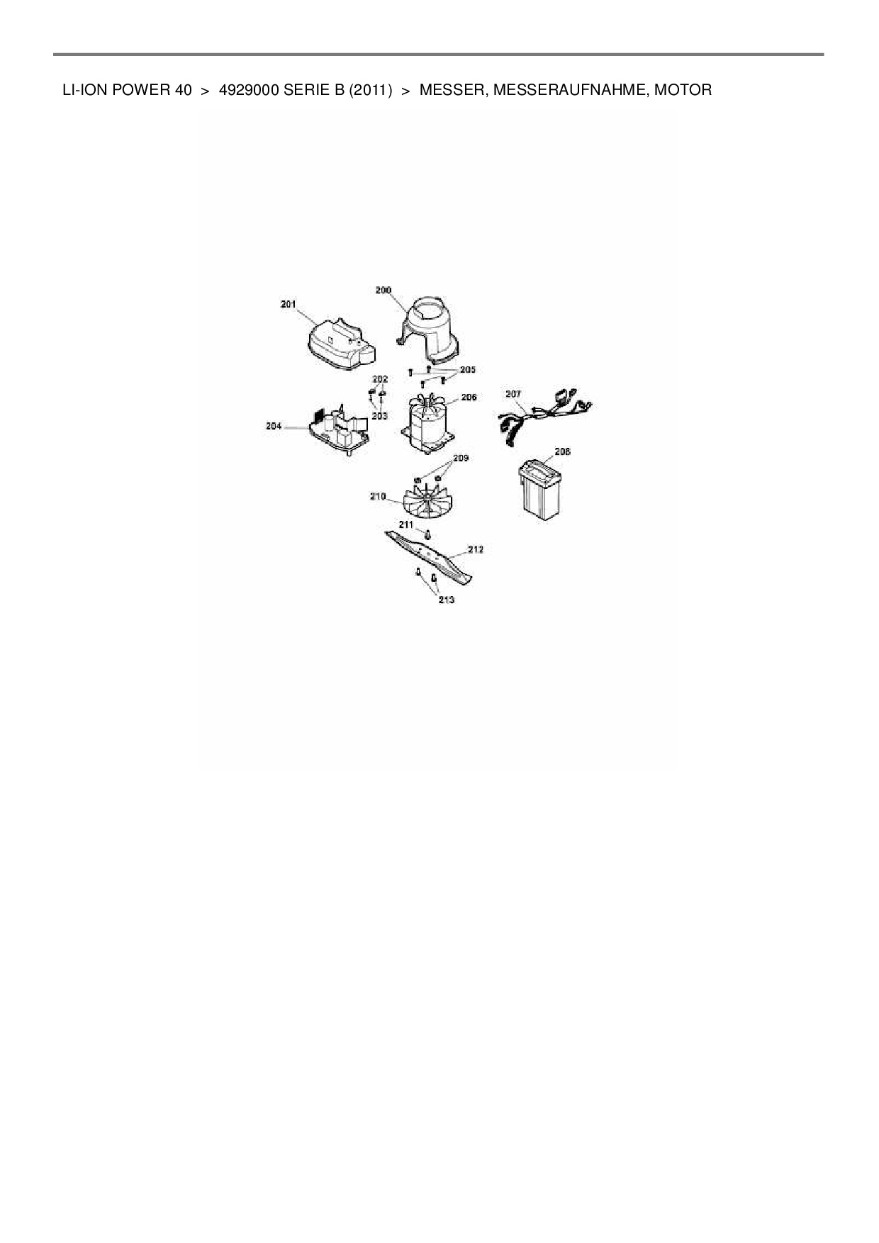 Ersatzteile für Akkumäher Wolf-Garten Li-Ion Power 40 aus der Zeichnung Messer, Messeraufnahme, Motor: