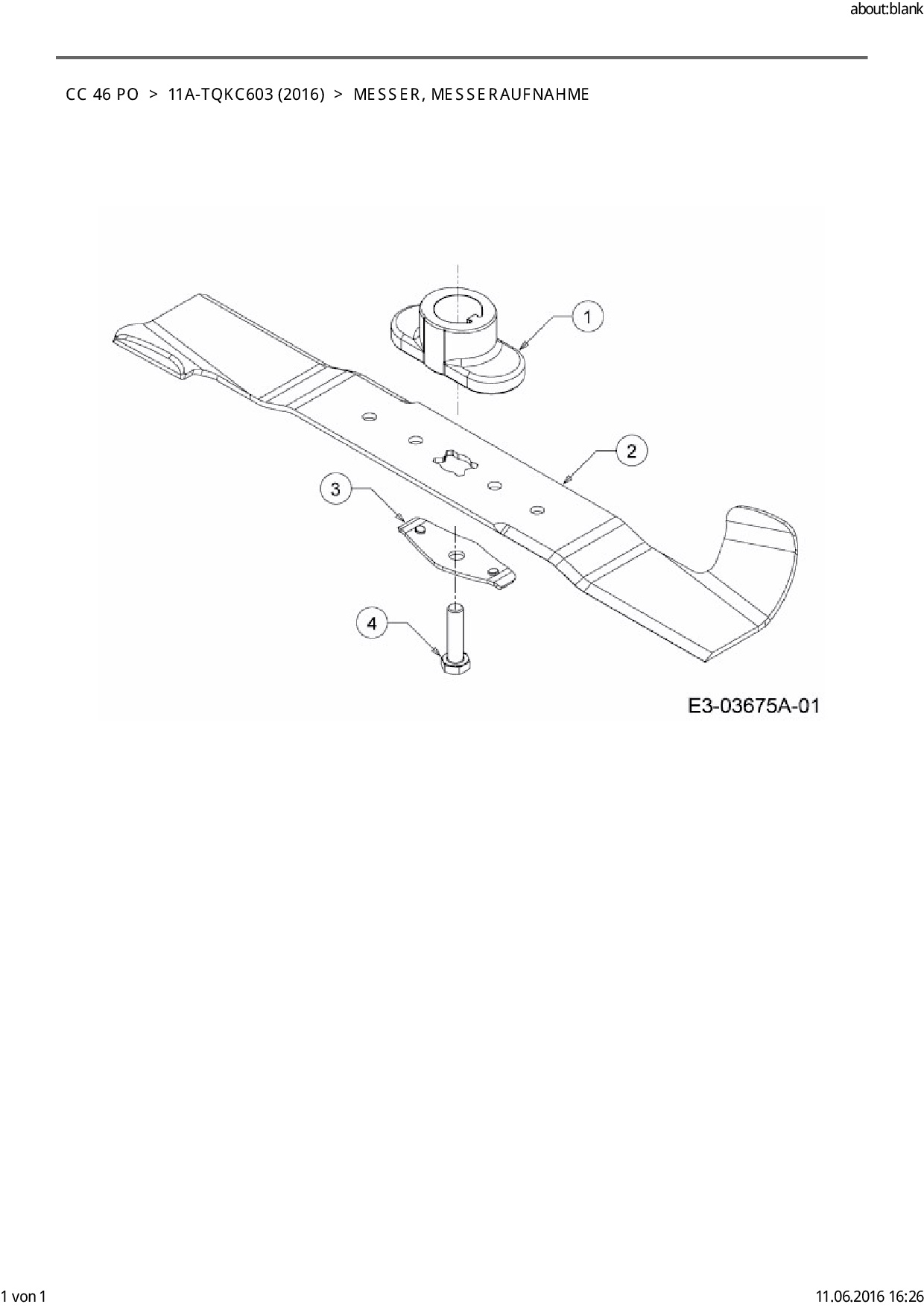 Ersatzteile für Motormäher Cub Cadet CC 46 PO aus der Zeichnung Messer, Messeraufnahme:
