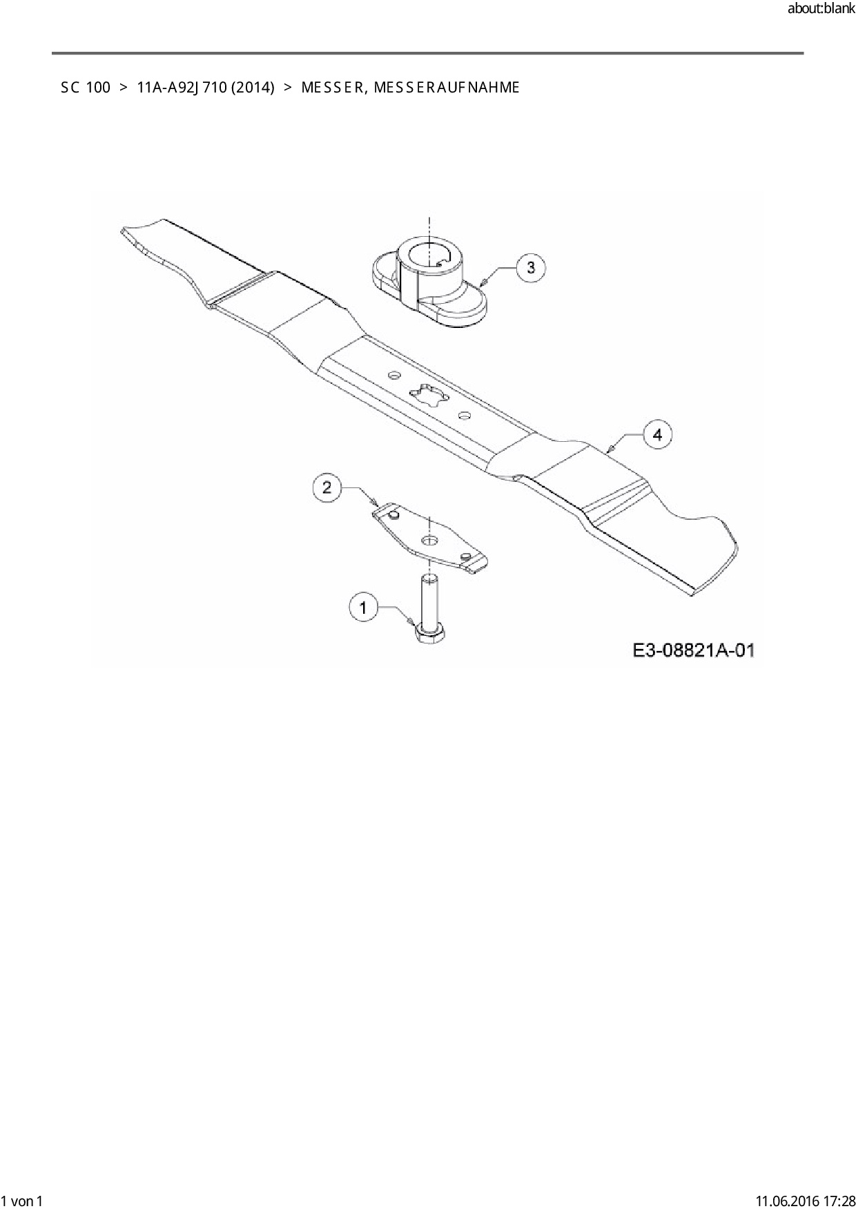 Ersatzteile für Motormäher Cub Cadet SC 100 aus der Zeichnung Messer, Messeraufnahme: