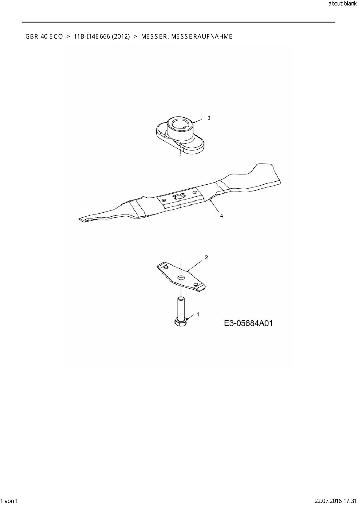 Ersatzteile für Motormäher Garda GBR 40 ECO aus der Zeichnung Messer, Messeraufnahme: