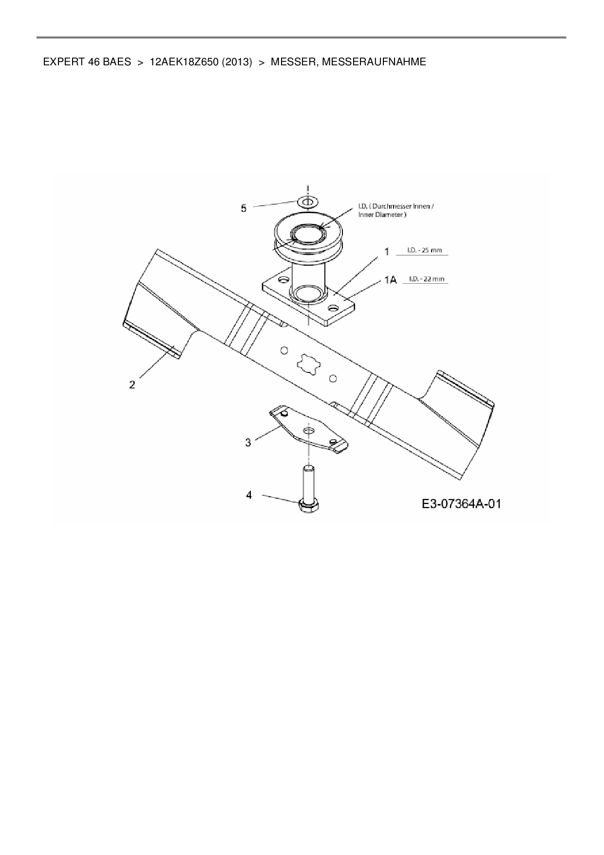 Ersatzteile für Motormäher mit Antrieb Wolf-Garten Expert Expert 46 BAES aus der Zeichnung Messer, Messeraufnahme:
