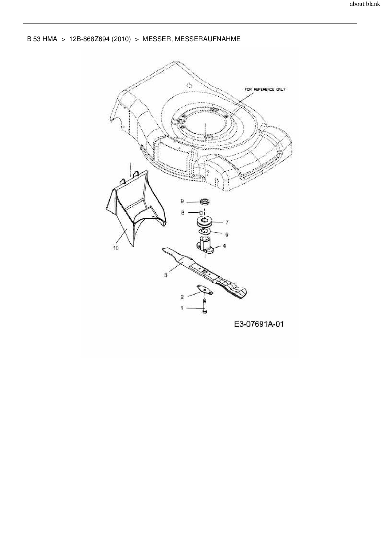 Ersatzteile für Motormäher mit Antrieb Lux Tools B 53 HMA aus der Zeichnung Messer, Messeraufnahme: