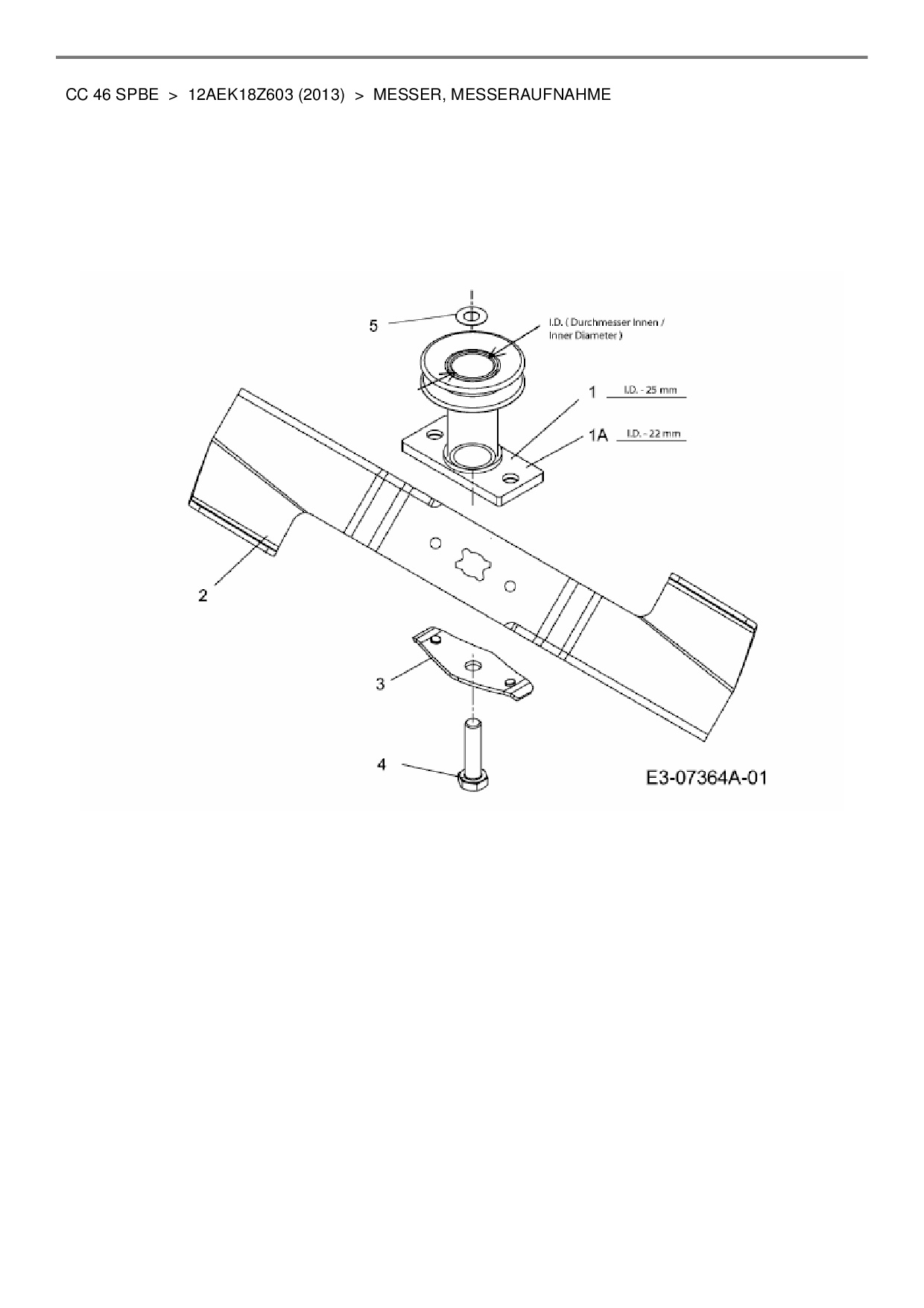 Ersatzteile für Motormäher mit Antrieb Cub Cadet CC 46 SPBE aus der Zeichnung Messer, Messeraufnahme: