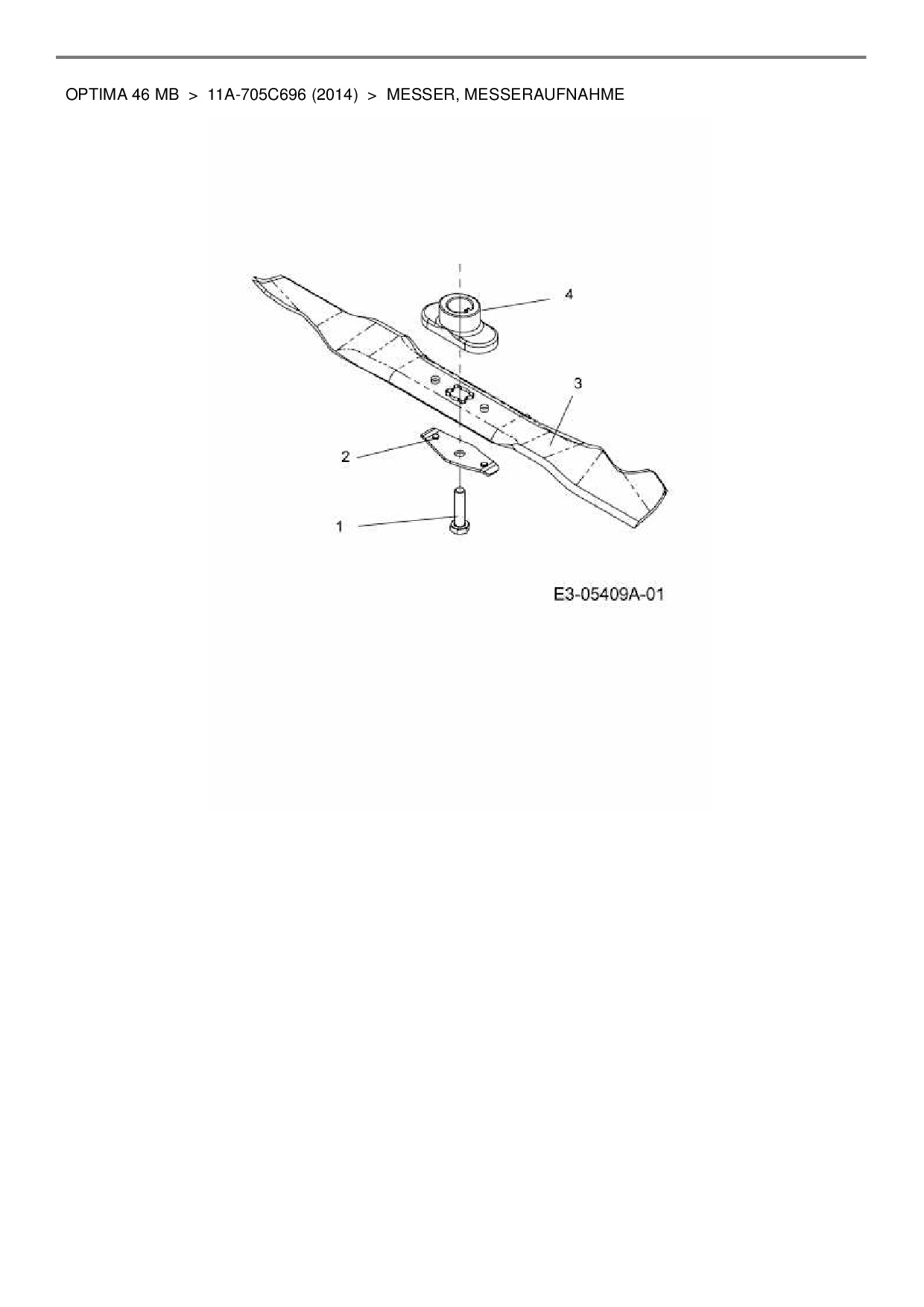 Ersatzteile für Motormäher MTD Optima 46 MB aus der Zeichnung Messer, Messeraufnahme: