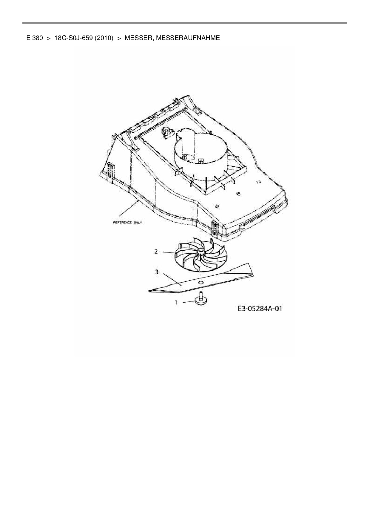 Ersatzteile für Elektromäher Mastercut E 380 aus der Zeichnung Messer, Messeraufnahme: