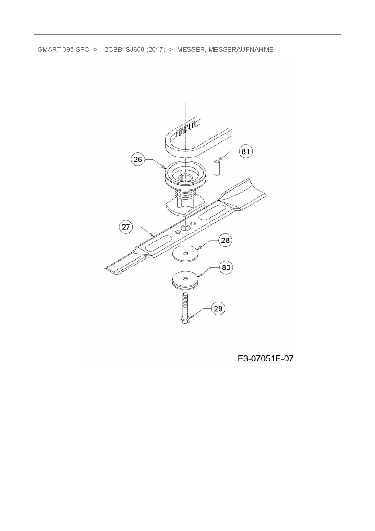 Ersatzteile für Motormäher mit Antrieb MTD Smart 395 SPO aus der Zeichnung Messer, Messeraufnahme: