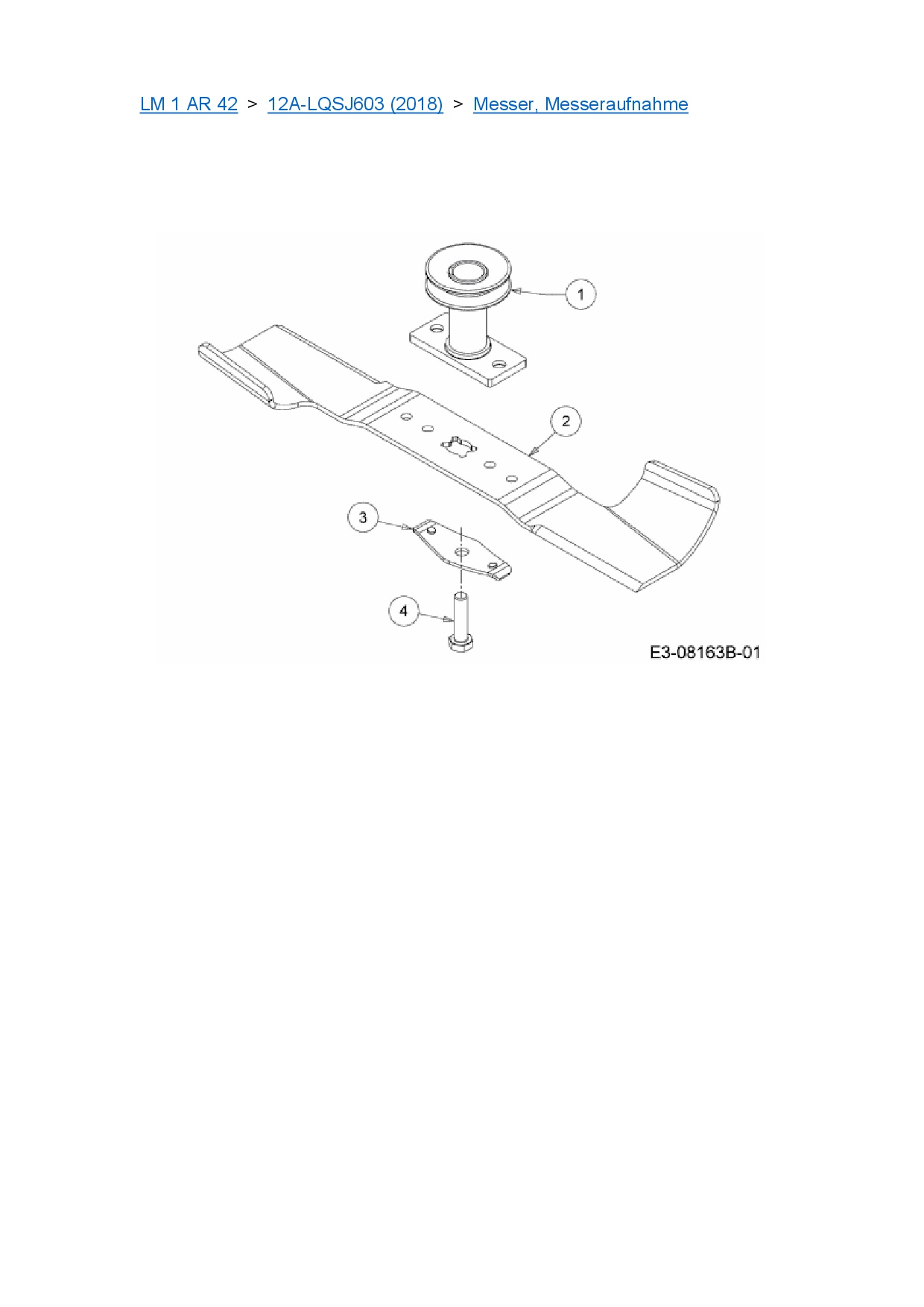 Ersatzteile für Motormäher mit Antrieb Cub Cadet LM 1 AR 42 aus der Zeichnung Messer, Messeraufnahme: