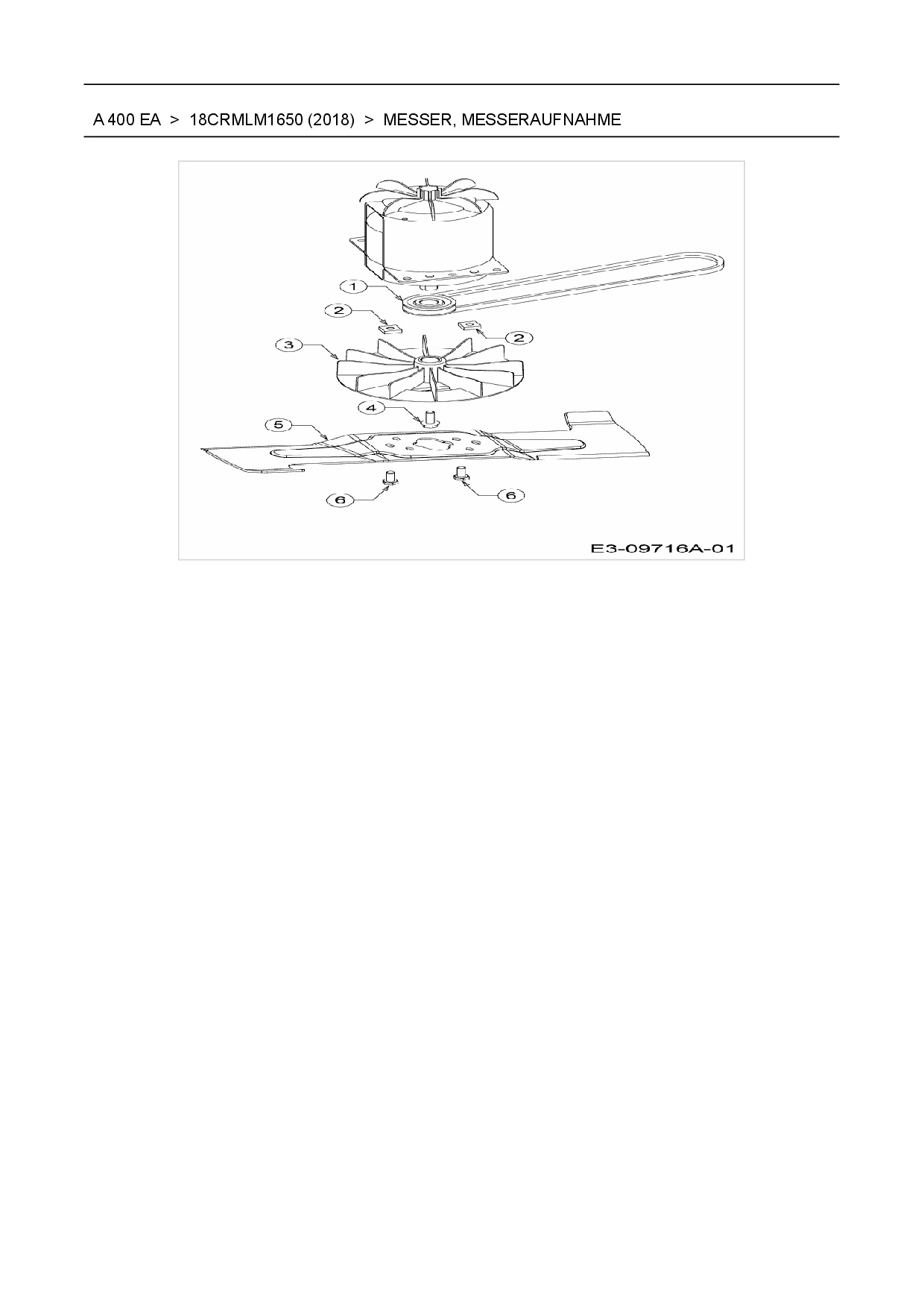Ersatzteile für Elektromäher mit Antrieb Wolf-Garten A 400 EA aus der Zeichnung Messer, Messeraufnahme: