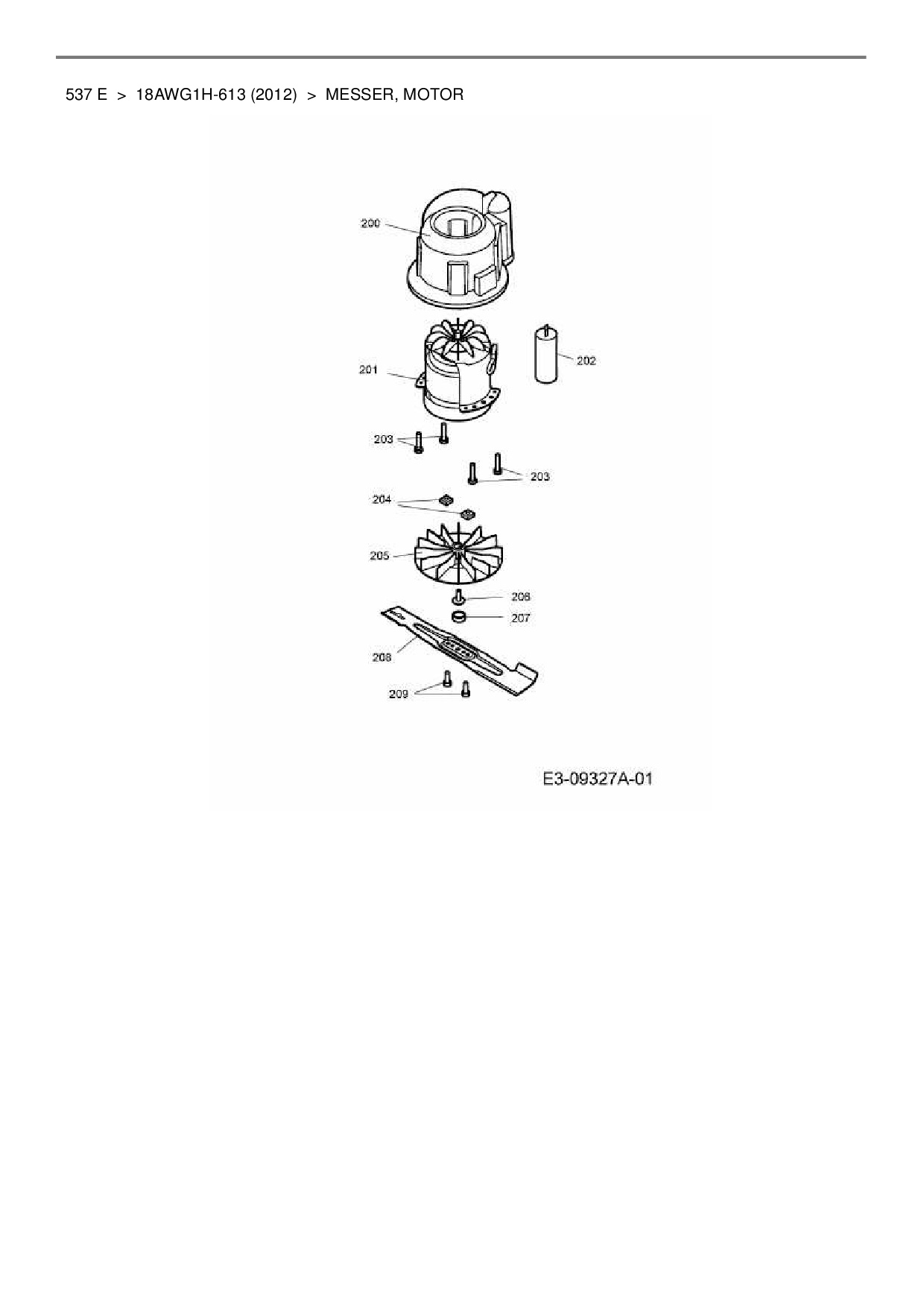 Ersatzteile für Elektromäher Wolf-Garten 537 E aus der Zeichnung Messer, Motor: