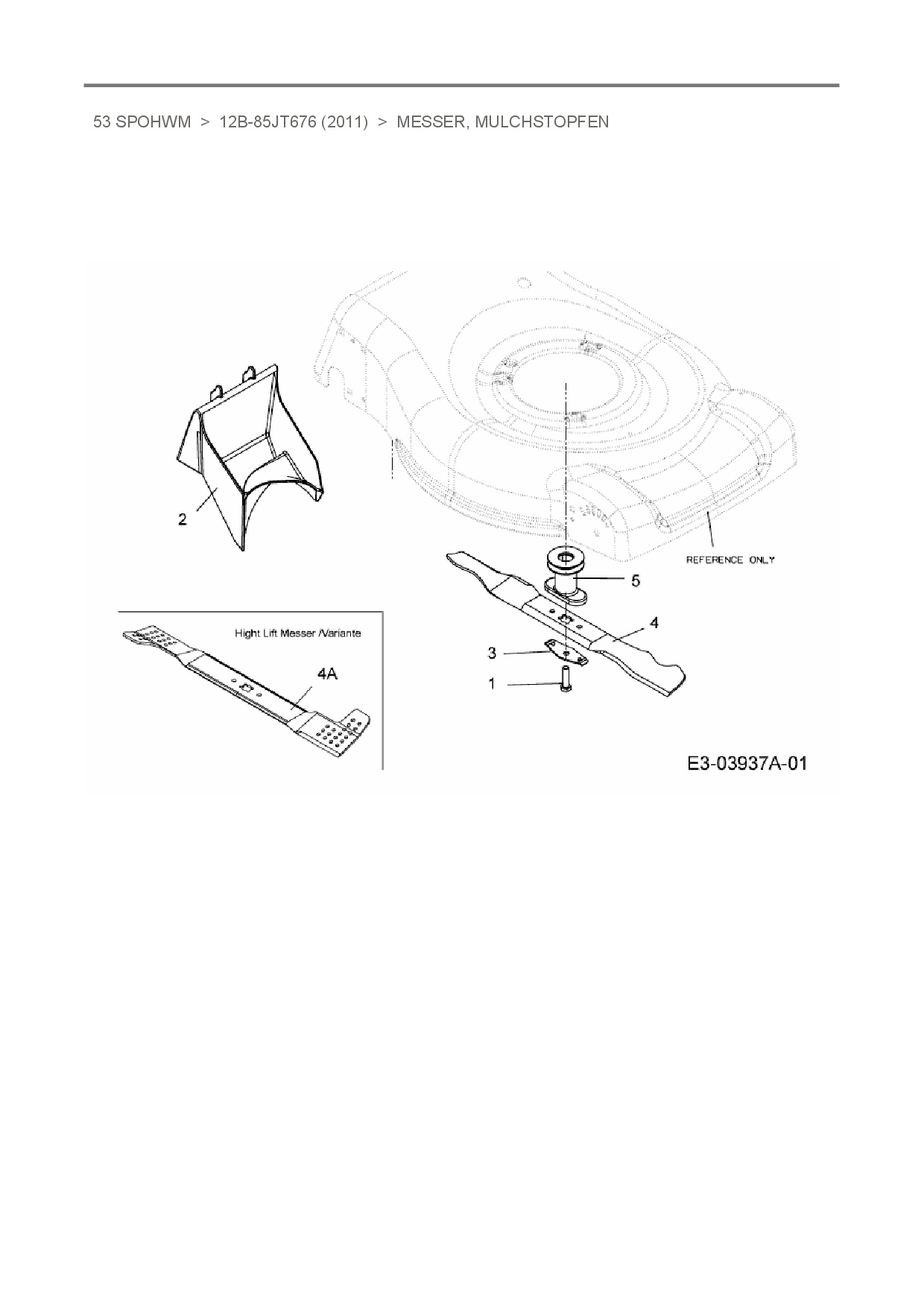 Download Ersatzteil-Zeichnung MTD 53 SPOHWM Zeichnung Messer, Mulchstopfen (PDF-Format)