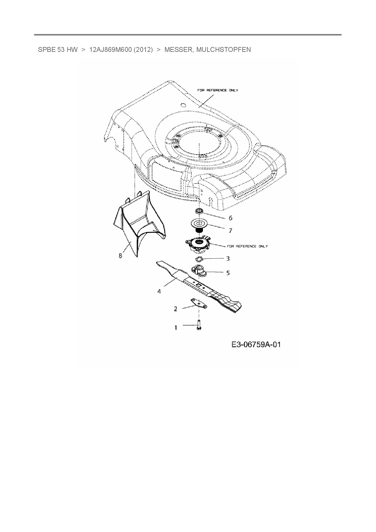 Ersatzteile für Motormäher mit Antrieb MTD SPBE 53 HW aus der Zeichnung Messer, Mulchstopfen: