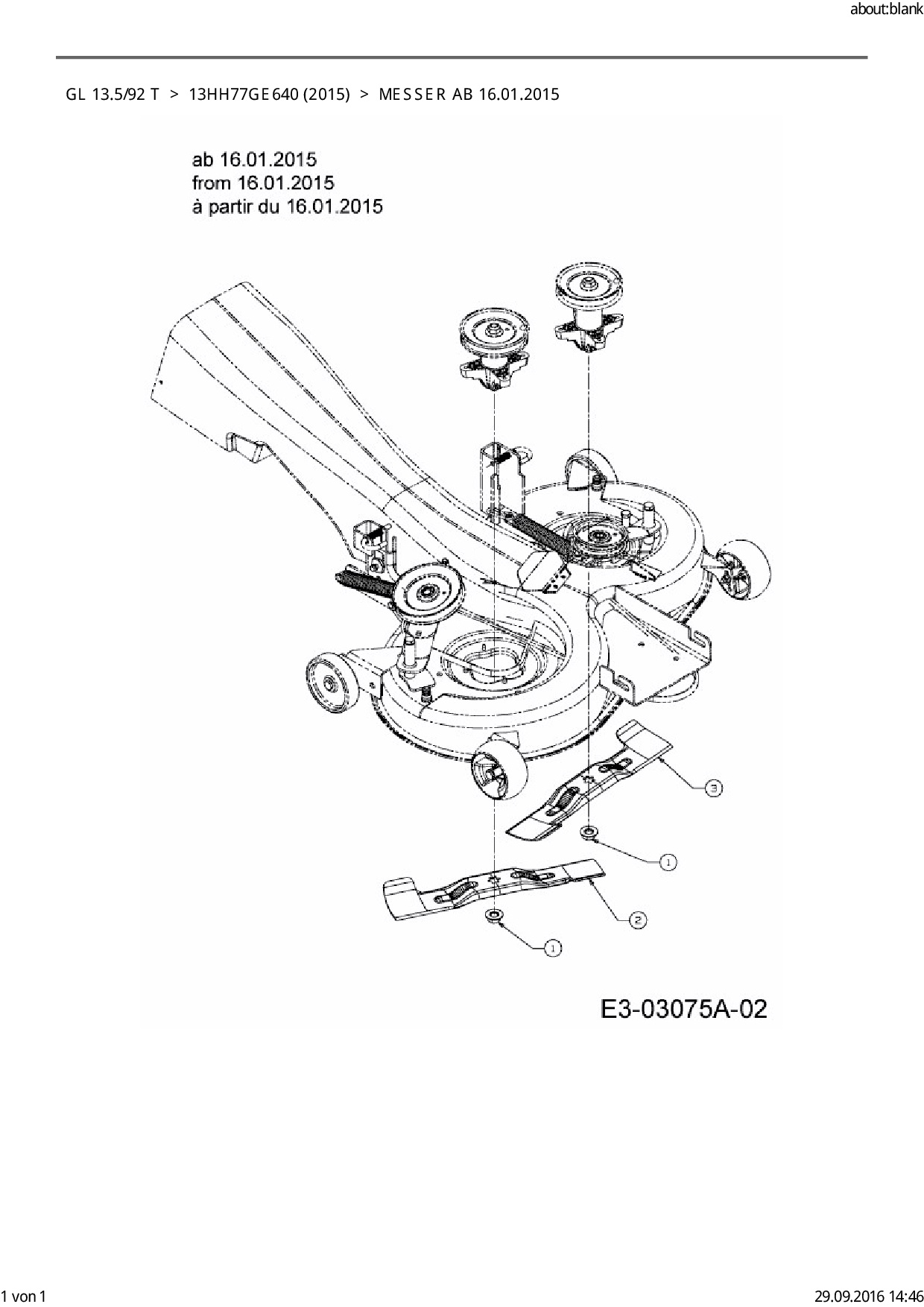 Ersatzteile für Rasentraktor Gartenland GL 13.5/92 T aus der Zeichnung Messer ab 16.01.2015: