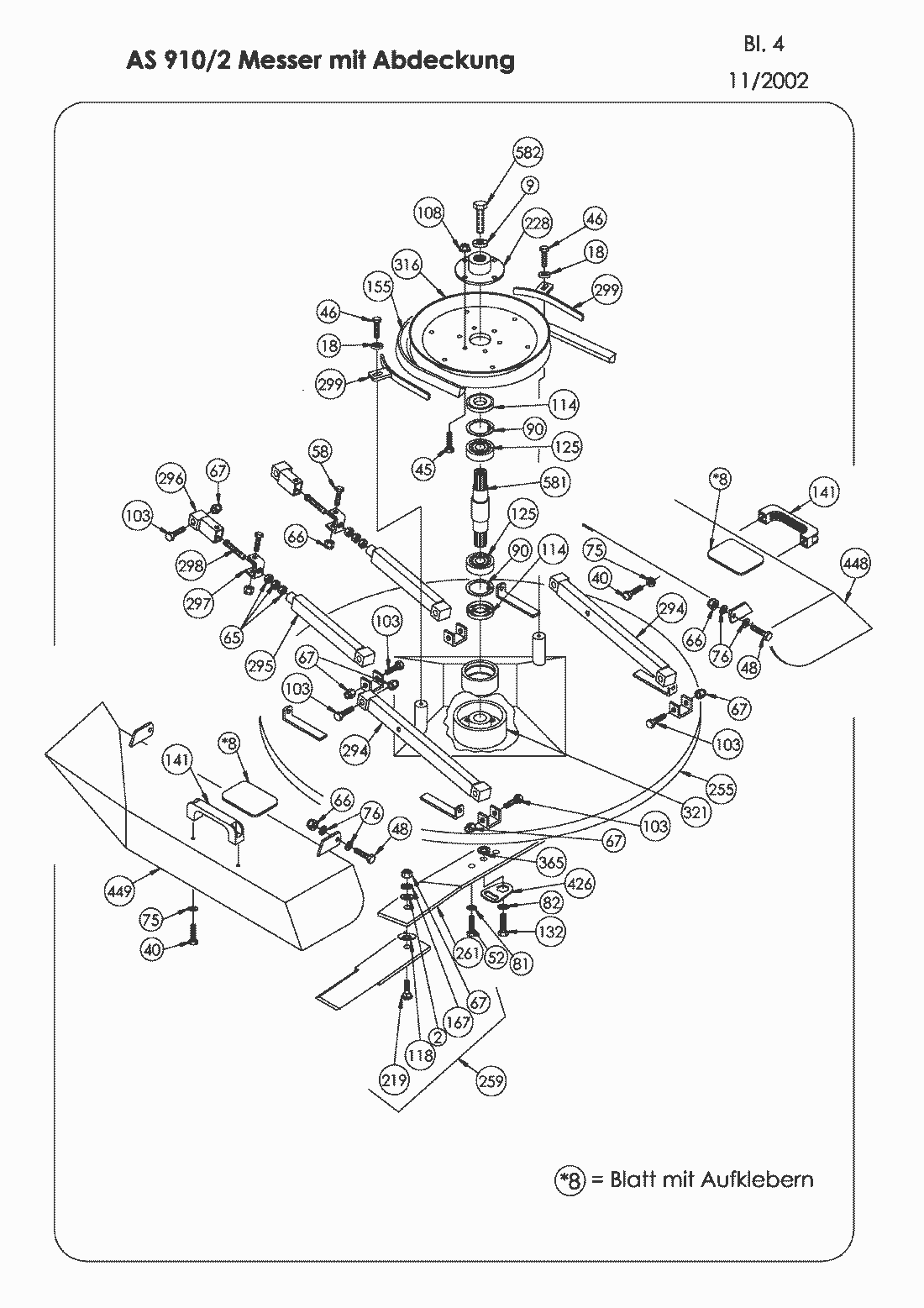 Hier finden Sie alle Ersatzteile von AS-Motor Aufsitzmäher AS 910/2 Enduro ab FNr. 014405101012 aus dem Zeichnungsblatt Messer mit Abdeckung: