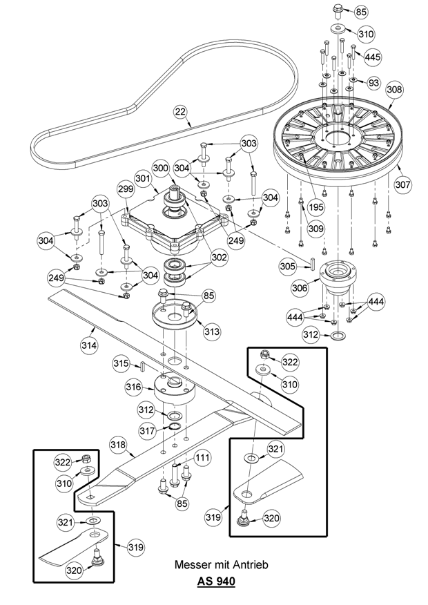 Hier finden Sie alle Ersatzteile von AS-Motor Aufsitzmäher AS 940 Sherpa 4WD B&S ab FNr. 021910030001 aus dem Zeichnungsblatt Messer mit Antrieb: