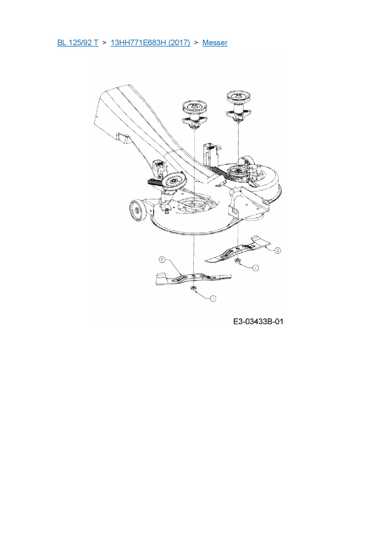Ersatzteile für Rasentraktor Black-Line BL 125/92 T aus der Zeichnung Messer:
