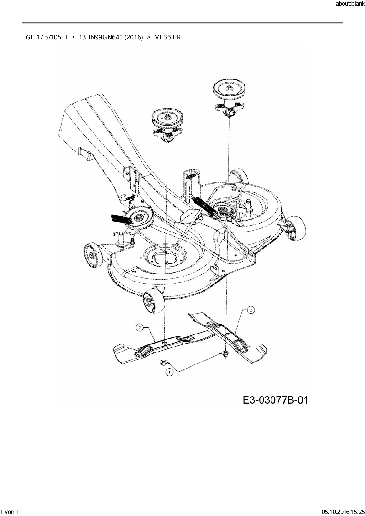Ersatzteile für Rasentraktor Gartenland GL 17.5/105 H aus der Zeichnung Messer: