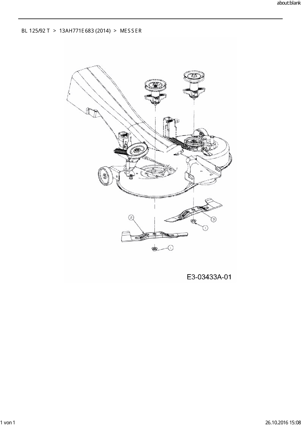 Ersatzteile für Rasentraktor Black-Line BL 125/92 T aus der Zeichnung Messer:
