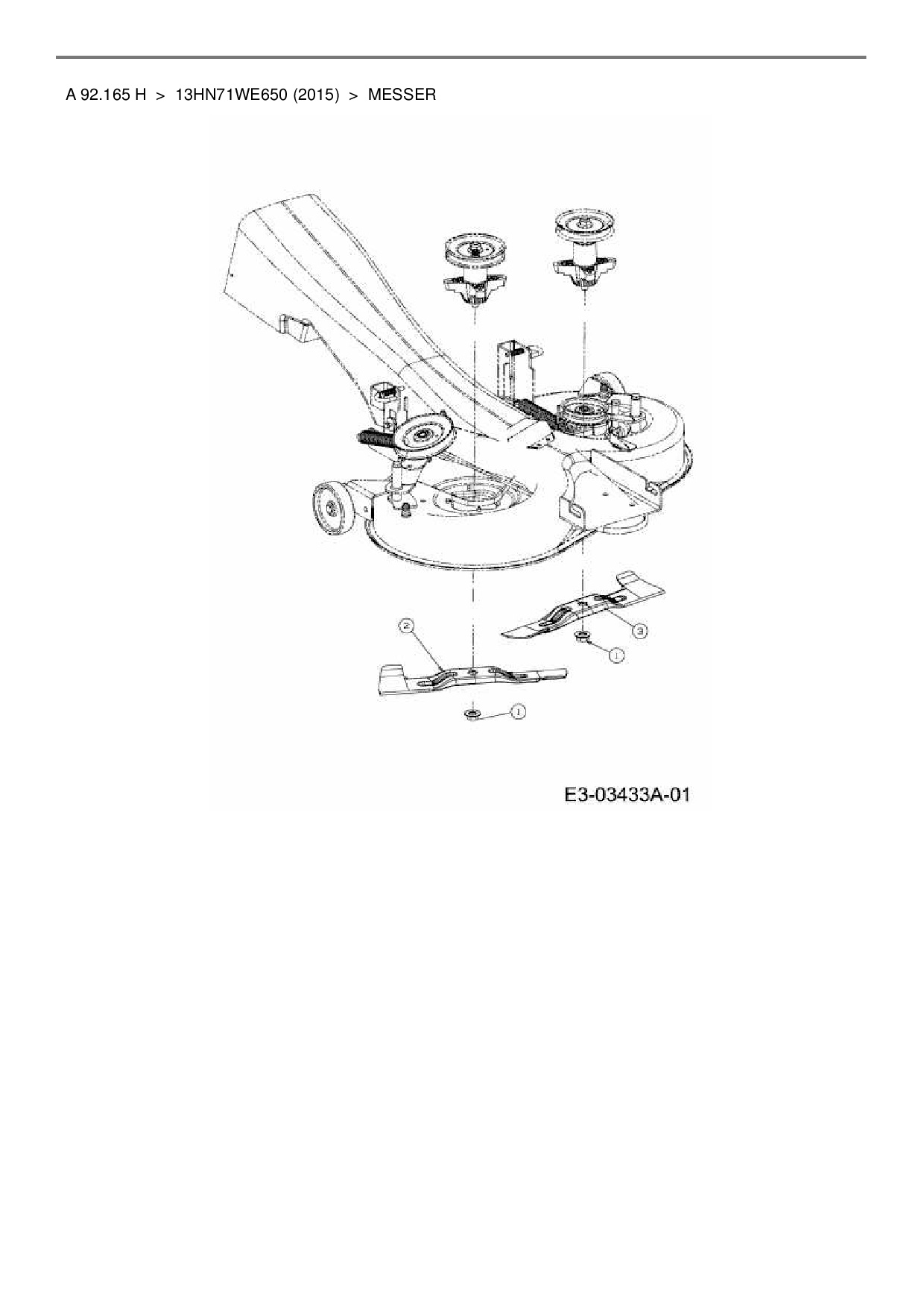 Ersatzteile für Rasentraktor Wolf-Garten A 92.165 H aus der Zeichnung Messer: