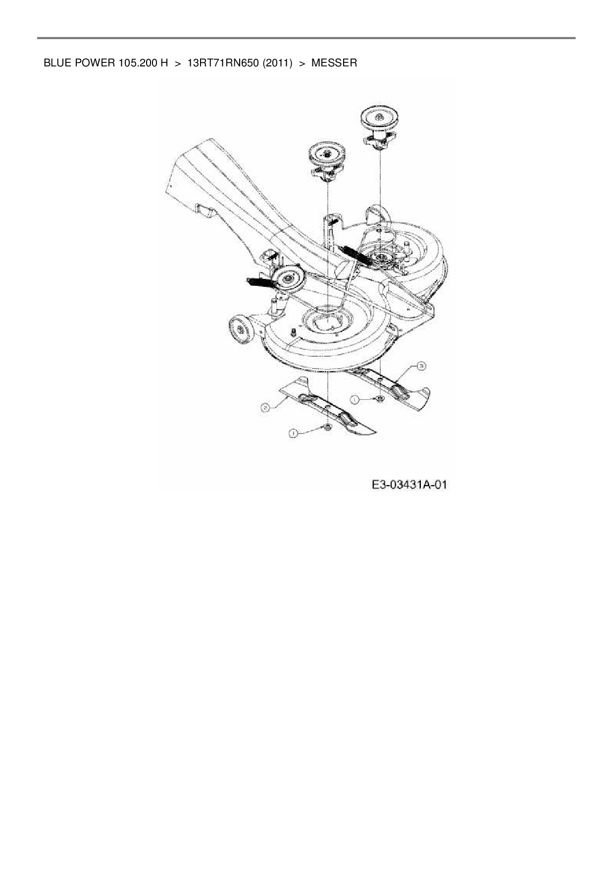 Ersatzteile für Rasentraktor Wolf-Garten Blue Power 105.200 H aus der Zeichnung Messer: