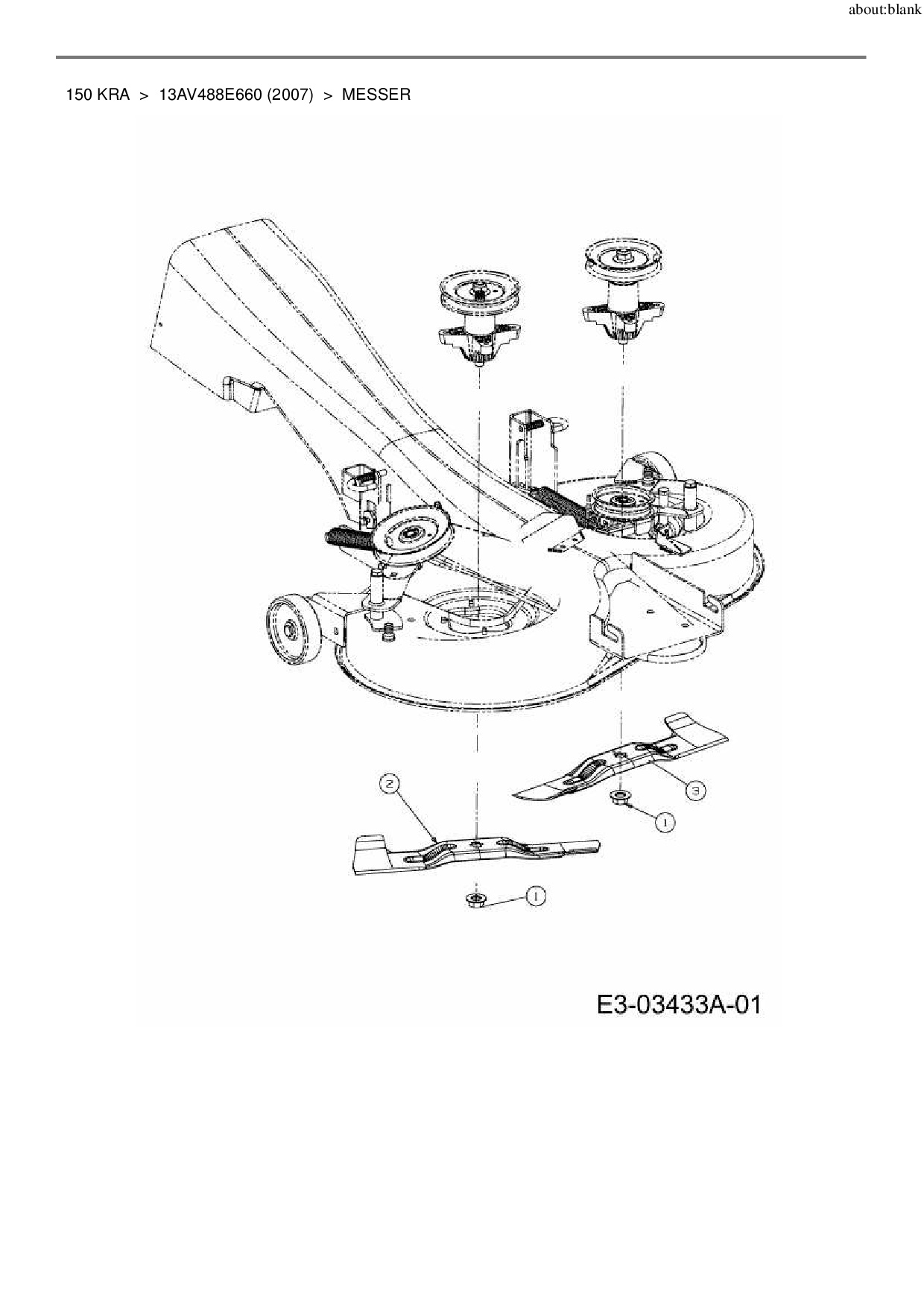 Ersatzteile für Rasentraktor IKS-PRO 150 KRA aus der Zeichnung Messer: