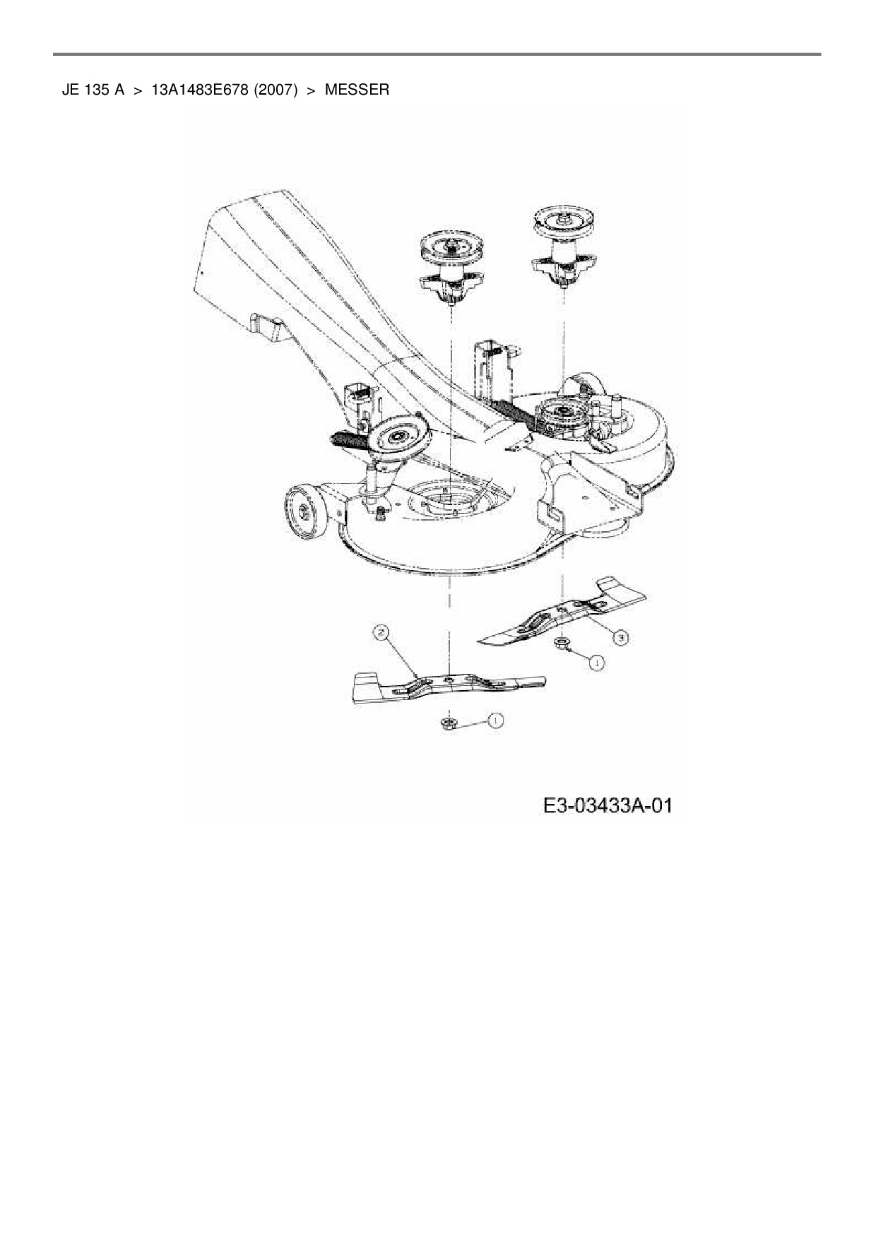 Ersatzteile für Rasentraktor MTD JE 135 A aus der Zeichnung Messer:
